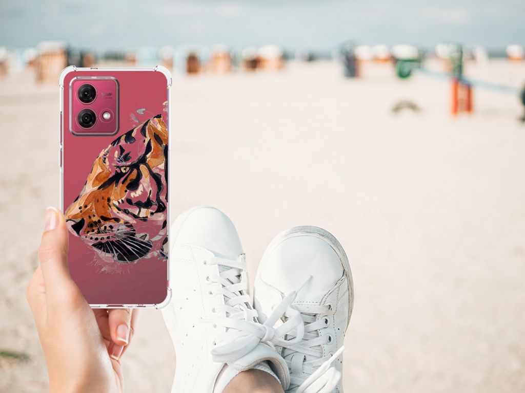 Ben je op zoek naar een uniek telefoonhoesje voor je Motorola Moto G84? Dan ben je bij B2C Telecom aan het juiste adres! Speciaal voor jou hebben we dit prachtige Tiger design in onze collectie hoesjes opgenomen. Het design wordt bedrukt op een Back Cover en is gemaakt van flexibel rubber. Het hoesje is perfect voor de actieve smartphonegebruiker door de opstaande randen/hoeken. Denk aan mensen die veel sporten, reizen of wandelen en net iets meer zekerheid willen als het op hun geliefde telefoon aankomt. Het design wordt alleen aan de bovenkant van het hoesje bedrukt en de randen blijven transparant. Aan de zijkanten zijn uitsparingen gemaakt waardoor je met gemak alle knoppen en poorten kunt bedienen. Wij adviseren om dit hoesje in combinatie met een screenprotector te gebruiken voor een langere levensduur van je telefoon. Wil je dit hoesje nog iets extra's geven? Voeg dan gratis je naam of een quote toe! Is dit design hoesje toch niet helemaal wat je zocht? Ontwerp dan zelf een hoesje in ons ontwerpprogramma.