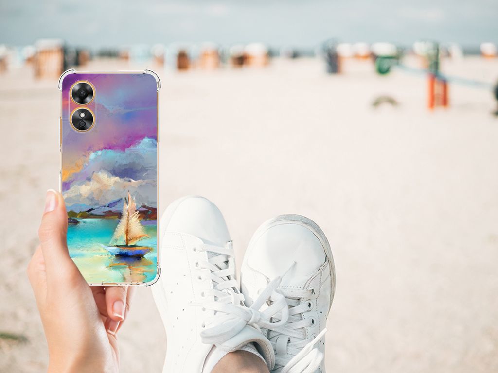 Ben je op zoek naar een uniek telefoonhoesje voor je OPPO A17? Dan ben je bij B2C Telecom aan het juiste adres! Speciaal voor jou hebben we dit prachtige Boat design in onze collectie hoesjes opgenomen. Het design wordt bedrukt op een Back Cover en is gemaakt van flexibel rubber. Het hoesje is perfect voor de actieve smartphonegebruiker door de opstaande randen/hoeken. Denk aan mensen die veel sporten, reizen of wandelen en net iets meer zekerheid willen als het op hun geliefde telefoon aankomt. Het design wordt alleen aan de bovenkant van het hoesje bedrukt en de randen blijven transparant. Aan de zijkanten zijn uitsparingen gemaakt waardoor je met gemak alle knoppen en poorten kunt bedienen. Wij adviseren om dit hoesje in combinatie met een screenprotector te gebruiken voor een langere levensduur van je telefoon. Wil je dit hoesje nog iets extra's geven? Voeg dan gratis je naam of een quote toe! Is dit design hoesje toch niet helemaal wat je zocht? Ontwerp dan zelf een hoesje in ons ontwerpprogramma.