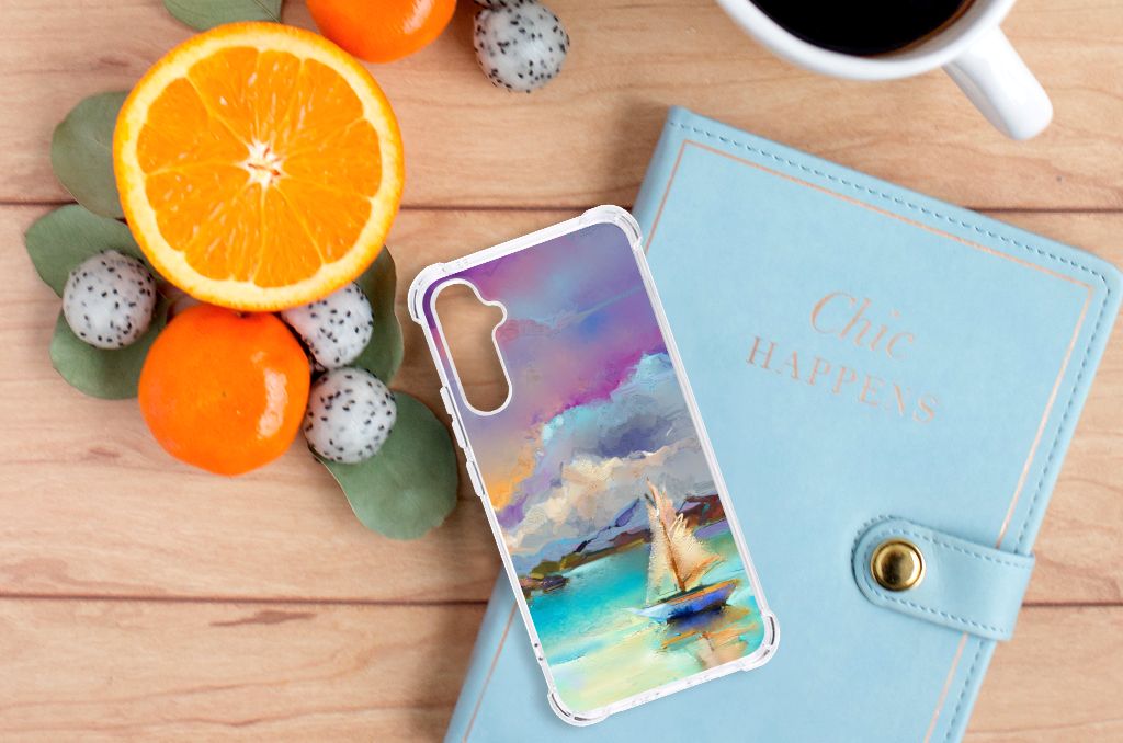 Ben je op zoek naar een uniek telefoonhoesje voor je Samsung Galaxy A34? Dan ben je bij B2C Telecom aan het juiste adres! Speciaal voor jou hebben we dit prachtige Boat design in onze collectie hoesjes opgenomen. Het design wordt bedrukt op een Back Cover en is gemaakt van flexibel rubber. Het hoesje is perfect voor de actieve smartphonegebruiker door de opstaande randen/hoeken. Denk aan mensen die veel sporten, reizen of wandelen en net iets meer zekerheid willen als het op hun geliefde telefoon aankomt. Het design wordt alleen aan de bovenkant van het hoesje bedrukt en de randen blijven transparant. Aan de zijkanten zijn uitsparingen gemaakt waardoor je met gemak alle knoppen en poorten kunt bedienen. Wij adviseren om dit hoesje in combinatie met een screenprotector te gebruiken voor een langere levensduur van je telefoon. Wil je dit hoesje nog iets extra's geven? Voeg dan gratis je naam of een quote toe! Is dit design hoesje toch niet helemaal wat je zocht? Ontwerp dan zelf een hoesje in ons ontwerpprogramma.