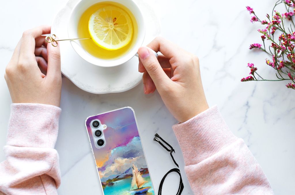Ben je op zoek naar een uniek telefoonhoesje voor je Samsung Galaxy A54 5G? Dan ben je bij B2C Telecom aan het juiste adres! Speciaal voor jou hebben we dit prachtige Boat design in onze collectie hoesjes opgenomen. Het design wordt bedrukt op een Back Cover en is gemaakt van flexibel rubber. Het hoesje is perfect voor de actieve smartphonegebruiker door de opstaande randen/hoeken. Denk aan mensen die veel sporten, reizen of wandelen en net iets meer zekerheid willen als het op hun geliefde telefoon aankomt. Het design wordt alleen aan de bovenkant van het hoesje bedrukt en de randen blijven transparant. Aan de zijkanten zijn uitsparingen gemaakt waardoor je met gemak alle knoppen en poorten kunt bedienen. Wij adviseren om dit hoesje in combinatie met een screenprotector te gebruiken voor een langere levensduur van je telefoon. Wil je dit hoesje nog iets extra's geven? Voeg dan gratis je naam of een quote toe! Is dit design hoesje toch niet helemaal wat je zocht? Ontwerp dan zelf een hoesje in ons ontwerpprogramma.