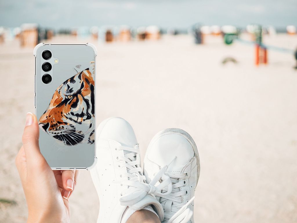Ben je op zoek naar een uniek telefoonhoesje voor je Samsung Galaxy A54? Dan ben je bij B2C Telecom aan het juiste adres! Speciaal voor jou hebben we dit prachtige Tiger design in onze collectie hoesjes opgenomen. Het design wordt bedrukt op een Back Cover en is gemaakt van flexibel rubber. Het hoesje is perfect voor de actieve smartphonegebruiker door de opstaande randen/hoeken. Denk aan mensen die veel sporten, reizen of wandelen en net iets meer zekerheid willen als het op hun geliefde telefoon aankomt. Het design wordt alleen aan de bovenkant van het hoesje bedrukt en de randen blijven transparant. Aan de zijkanten zijn uitsparingen gemaakt waardoor je met gemak alle knoppen en poorten kunt bedienen. Wij adviseren om dit hoesje in combinatie met een screenprotector te gebruiken voor een langere levensduur van je telefoon. Wil je dit hoesje nog iets extra's geven? Voeg dan gratis je naam of een quote toe! Is dit design hoesje toch niet helemaal wat je zocht? Ontwerp dan zelf een hoesje in ons ontwerpprogramma.