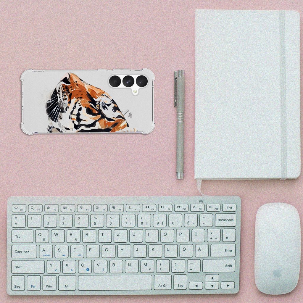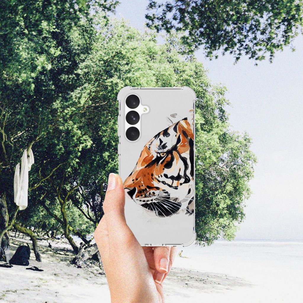 Ben je op zoek naar een uniek telefoonhoesje voor je Samsung Galaxy A55? Dan ben je bij B2C Telecom aan het juiste adres! Speciaal voor jou hebben we dit prachtige Tiger design in onze collectie hoesjes opgenomen. Het design wordt bedrukt op een Back Cover en is gemaakt van flexibel rubber. Het hoesje is perfect voor de actieve smartphonegebruiker door de opstaande randen/hoeken. Denk aan mensen die veel sporten, reizen of wandelen en net iets meer zekerheid willen als het op hun geliefde telefoon aankomt. Het design wordt alleen aan de bovenkant van het hoesje bedrukt en de randen blijven transparant. Aan de zijkanten zijn uitsparingen gemaakt waardoor je met gemak alle knoppen en poorten kunt bedienen. Wij adviseren om dit hoesje in combinatie met een screenprotector te gebruiken voor een langere levensduur van je telefoon. Wil je dit hoesje nog iets extra's geven? Voeg dan gratis je naam of een quote toe! Is dit design hoesje toch niet helemaal wat je zocht? Ontwerp dan zelf een hoesje in ons ontwerpprogramma.