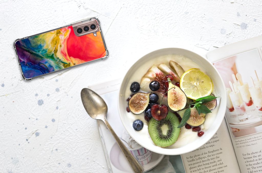 Ben je op zoek naar een uniek telefoonhoesje voor je Samsung Galaxy S21 Plus? Dan ben je bij B2C Telecom aan het juiste adres! Speciaal voor jou hebben we dit prachtige Watercolor Dark design in onze collectie hoesjes opgenomen. Het design wordt bedrukt op een Back Cover en is gemaakt van flexibel rubber. Het hoesje is perfect voor de actieve smartphonegebruiker door de opstaande randen/hoeken. Denk aan mensen die veel sporten, reizen of wandelen en net iets meer zekerheid willen als het op hun geliefde telefoon aankomt. Het design wordt alleen aan de bovenkant van het hoesje bedrukt en de randen blijven transparant. Aan de zijkanten zijn uitsparingen gemaakt waardoor je met gemak alle knoppen en poorten kunt bedienen. Wij adviseren om dit hoesje in combinatie met een screenprotector te gebruiken voor een langere levensduur van je telefoon. Wil je dit hoesje nog iets extra's geven? Voeg dan gratis je naam of een quote toe! Is dit design hoesje toch niet helemaal wat je zocht? Ontwerp dan zelf een hoesje in ons ontwerpprogramma.
