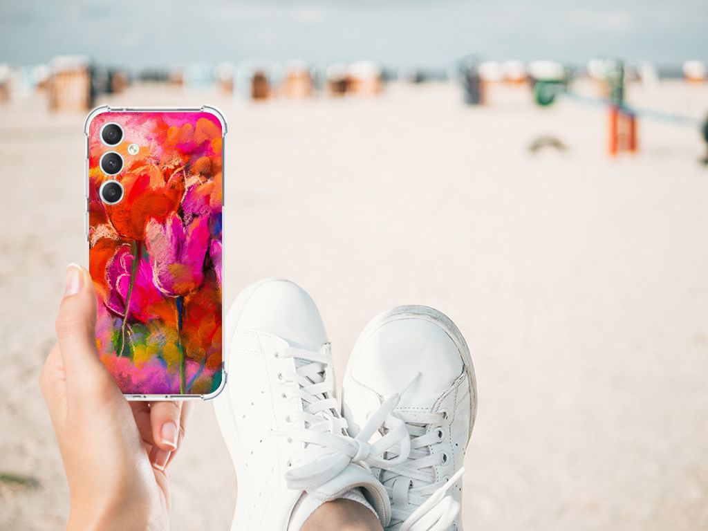 Ben je op zoek naar een uniek telefoonhoesje voor je Samsung Galaxy S23 FE? Dan ben je bij B2C Telecom aan het juiste adres! Speciaal voor jou hebben we dit prachtige Tulips design in onze collectie hoesjes opgenomen. Het design wordt bedrukt op een Back Cover en is gemaakt van flexibel rubber. Het hoesje is perfect voor de actieve smartphonegebruiker door de opstaande randen/hoeken. Denk aan mensen die veel sporten, reizen of wandelen en net iets meer zekerheid willen als het op hun geliefde telefoon aankomt. Het design wordt alleen aan de bovenkant van het hoesje bedrukt en de randen blijven transparant. Aan de zijkanten zijn uitsparingen gemaakt waardoor je met gemak alle knoppen en poorten kunt bedienen. Wij adviseren om dit hoesje in combinatie met een screenprotector te gebruiken voor een langere levensduur van je telefoon. Wil je dit hoesje nog iets extra's geven? Voeg dan gratis je naam of een quote toe! Is dit design hoesje toch niet helemaal wat je zocht? Ontwerp dan zelf een hoesje in ons ontwerpprogramma.