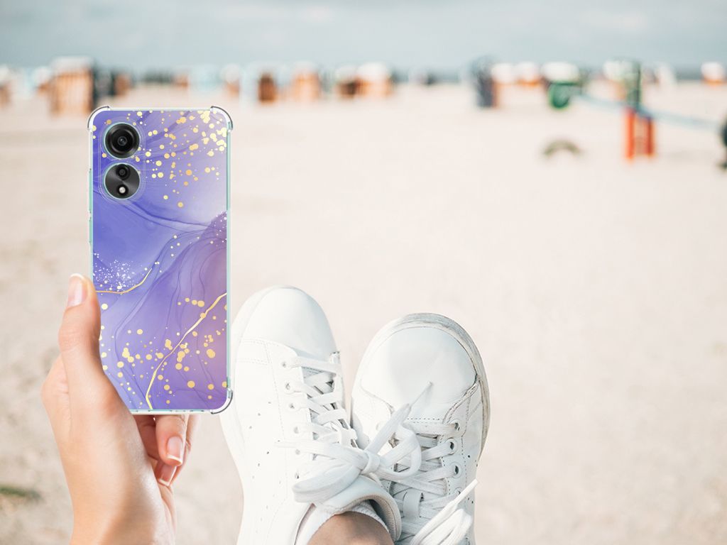 Wauw! Hoe mooi is dit watercolor hoesje in het paars? Super mooi toch! Wij garanderen jou 100% dat jouw OPPO A78 4G opvalt! Dit design wordt geprint op een Back Cover. Het ligt prettig in de hand en is licht van gewicht. Ook fijn zijn de extra dikke hoeken en randen, waardoor je OPPO A78 4G goed beschermd is bij een val. Alleen de achterkant van je telefoon wordt beschermd. Daarom adviseren wij om dit hoesje in combinatie met een screenprotector te gebruiken. Bestel vandaag nog dit telefoonhoesje met prachtige watercolor paars design!