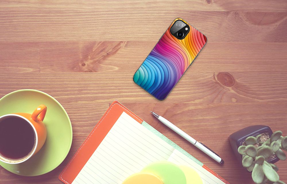 Een regenboog bestaat eigenlijk uit meer dan zeven kleuren, wist je dat? De zichtbare kleuren vloeien geleidelijk in elkaar over, waardoor er eigenlijk meer dan zeven kleuren zijn. Dat wij maar zeven ‘’stroken’’ licht zien, is dus eigenlijk gezichtsbedrog. Toch noemen wij dit hoesje regenboog, omdat wij er blij van worden! Dit design wordt geprint op een Backcover speciaal op maat gemaakt voor de Apple iPhone 14. Het ligt prettig in de hand en is licht van gewicht. Het is een mix van hardcase en TPU. Deze combinatie samen zorgt wat ons betreft voor een perfect hoesje als je van niet te veel poespas houdt. Alleen de achterkant van je telefoon wordt beschermd. Daarom adviseren wij om dit hoesje in combinatie met een screenprotector te gebruiken. Bestel vandaag nog dit toffe regenboog hoesje!