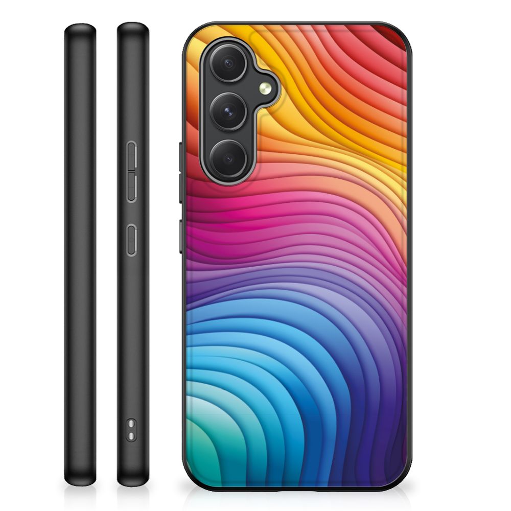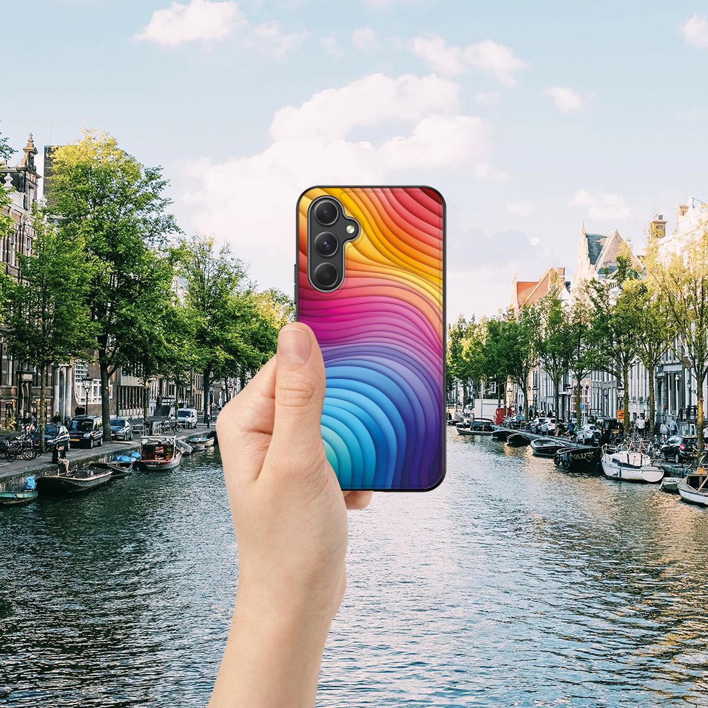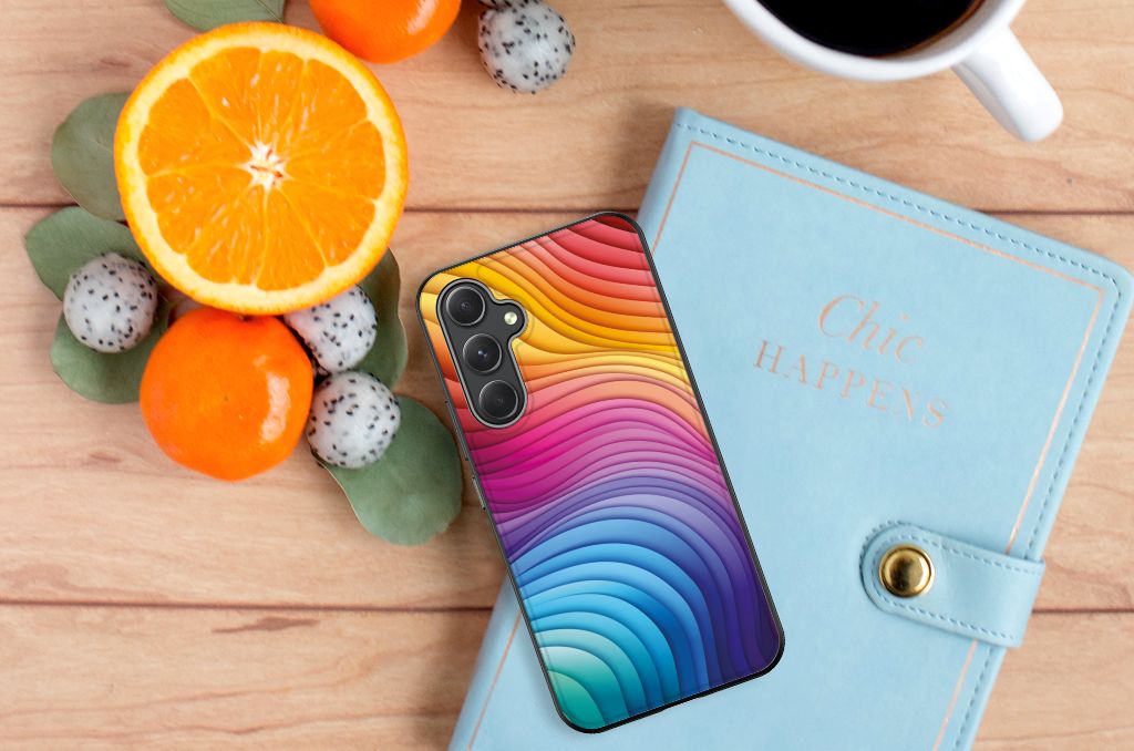 Een regenboog bestaat eigenlijk uit meer dan zeven kleuren, wist je dat? De zichtbare kleuren vloeien geleidelijk in elkaar over, waardoor er eigenlijk meer dan zeven kleuren zijn. Dat wij maar zeven ‘’stroken’’ licht zien, is dus eigenlijk gezichtsbedrog. Toch noemen wij dit hoesje regenboog, omdat wij er blij van worden! Dit design wordt geprint op een Backcover speciaal op maat gemaakt voor de Samsung Galaxy A54. Het ligt prettig in de hand en is licht van gewicht. Het is een mix van hardcase en TPU. Deze combinatie samen zorgt wat ons betreft voor een perfect hoesje als je van niet te veel poespas houdt. Alleen de achterkant van je telefoon wordt beschermd. Daarom adviseren wij om dit hoesje in combinatie met een screenprotector te gebruiken. Bestel vandaag nog dit toffe regenboog hoesje!