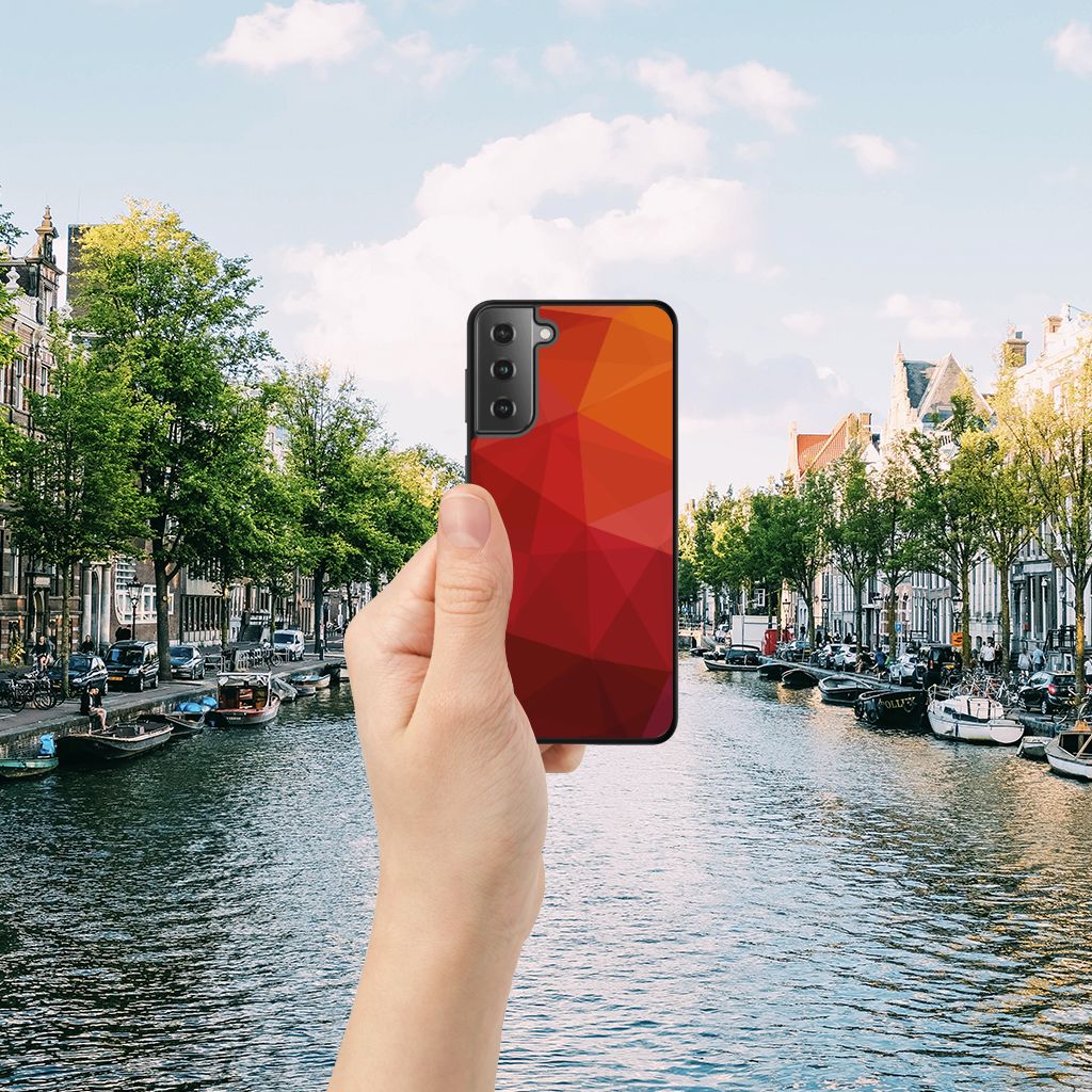 Houd jij van abstracte vormen? Dan is dit polygon red hoesje zeker iets voor jou! Door de verschillende kleuren en het verloop van donker naar licht val je gegarandeerd op met dit hoesje. Dit toffe design voor je Samsung Galaxy S21 wordt geprint op een Backcover. Het ligt prettig in de hand en is licht van gewicht. Het is een mix van hardcase en TPU. Deze combinatie samen zorgt wat ons betreft voor een perfect hoesje als je van niet te veel poespas houdt. Alleen de achterkant van je telefoon wordt beschermd. Daarom adviseren wij om dit hoesje in combinatie met een screenprotector te gebruiken. Bestel vandaag nog dit toffe smartphonehoesje met polygon red design!
