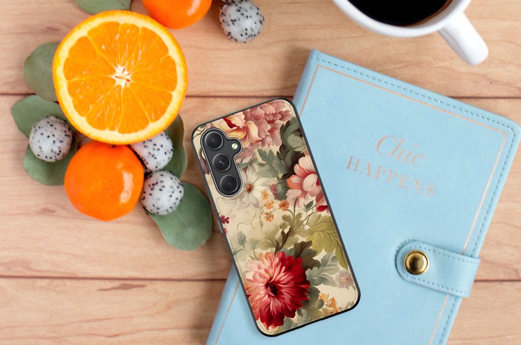 Wij (vrouwen) krijgen geen genoeg van chocolade, schoenen en bloemen. Daarom mag dit prachtige bloemen hoesje zeker niet ontbreken in onze collectie design hoesjes. Wij krijgen hier romantische vibes van, jij ook? Dit design wordt geprint op een Bloemen Hoesje speciaal op maat gemaakt voor de Samsung Galaxy A54. Het ligt prettig in de hand en is licht van gewicht. Het is een mix van hardcase en TPU. Deze combinatie samen zorgt wat ons betreft voor een perfect hoesje als je van niet te veel poespas houdt. Alleen de achterkant van je telefoon wordt beschermd. Daarom adviseren wij om dit hoesje in combinatie met een screenprotector te gebruiken. Bestel vandaag nog dit romantische bloemen hoesje!