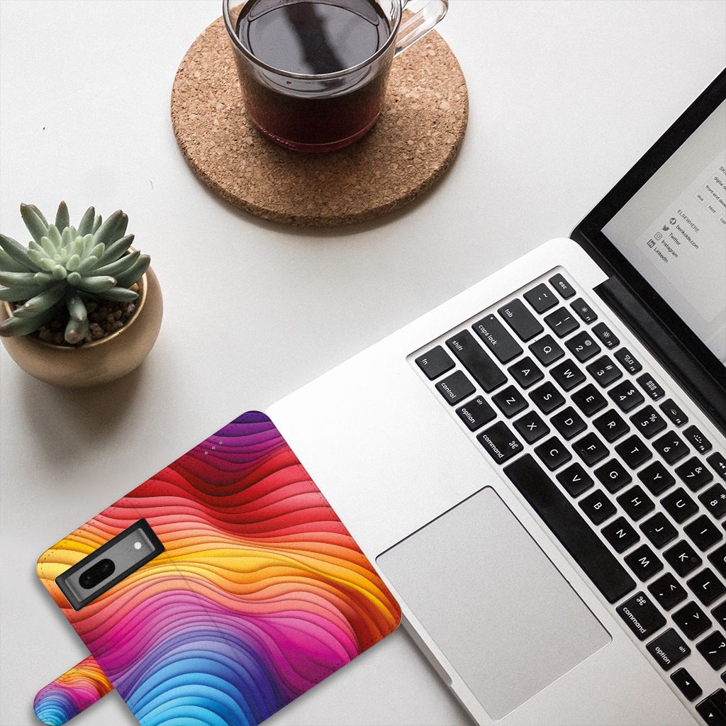 Een regenboog bestaat eigenlijk uit meer dan zeven kleuren, wist je dat? De zichtbare kleuren vloeien geleidelijk in elkaar over, waardoor er eigenlijk meer dan zeven kleuren zijn. Dat wij maar zeven ‘’stroken’’ licht zien, is dus eigenlijk gezichtsbedrog. Toch noemen wij dit hoesje regenboog, omdat wij er blij van worden! Dit design wordt geprint op een Book Case speciaal op maat gemaakt voor de Google Pixel 7. In dit hoesje kun je drie pasjes kwijt, super handig toch? Het hoesje wordt afgesloten met een sluit lipje, waardoor jouw telefoon altijd goed beschermd is. Bescherm je Google Pixel 7 vandaag nog dit toffe regenboog hoesje!