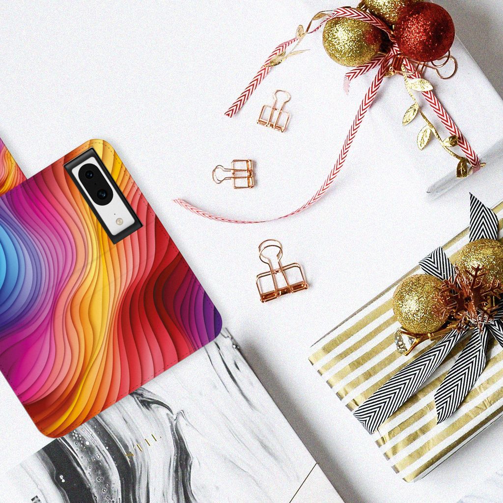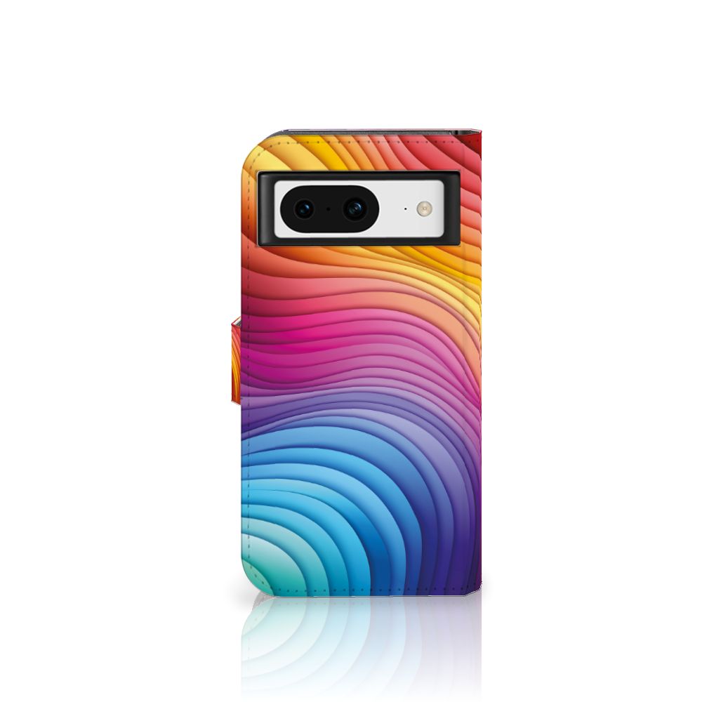 Een regenboog bestaat eigenlijk uit meer dan zeven kleuren, wist je dat? De zichtbare kleuren vloeien geleidelijk in elkaar over, waardoor er eigenlijk meer dan zeven kleuren zijn. Dat wij maar zeven ‘’stroken’’ licht zien, is dus eigenlijk gezichtsbedrog. Toch noemen wij dit hoesje regenboog, omdat wij er blij van worden! Dit design wordt geprint op een Book Case speciaal op maat gemaakt voor de Google Pixel 8. In dit hoesje kun je drie pasjes kwijt, super handig toch? Het hoesje wordt afgesloten met een sluit lipje, waardoor jouw telefoon altijd goed beschermd is. Bescherm je Google Pixel 8 vandaag nog dit toffe regenboog hoesje!