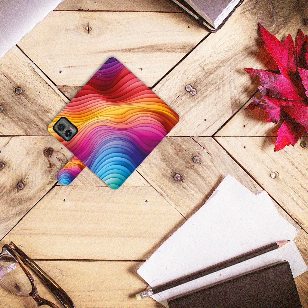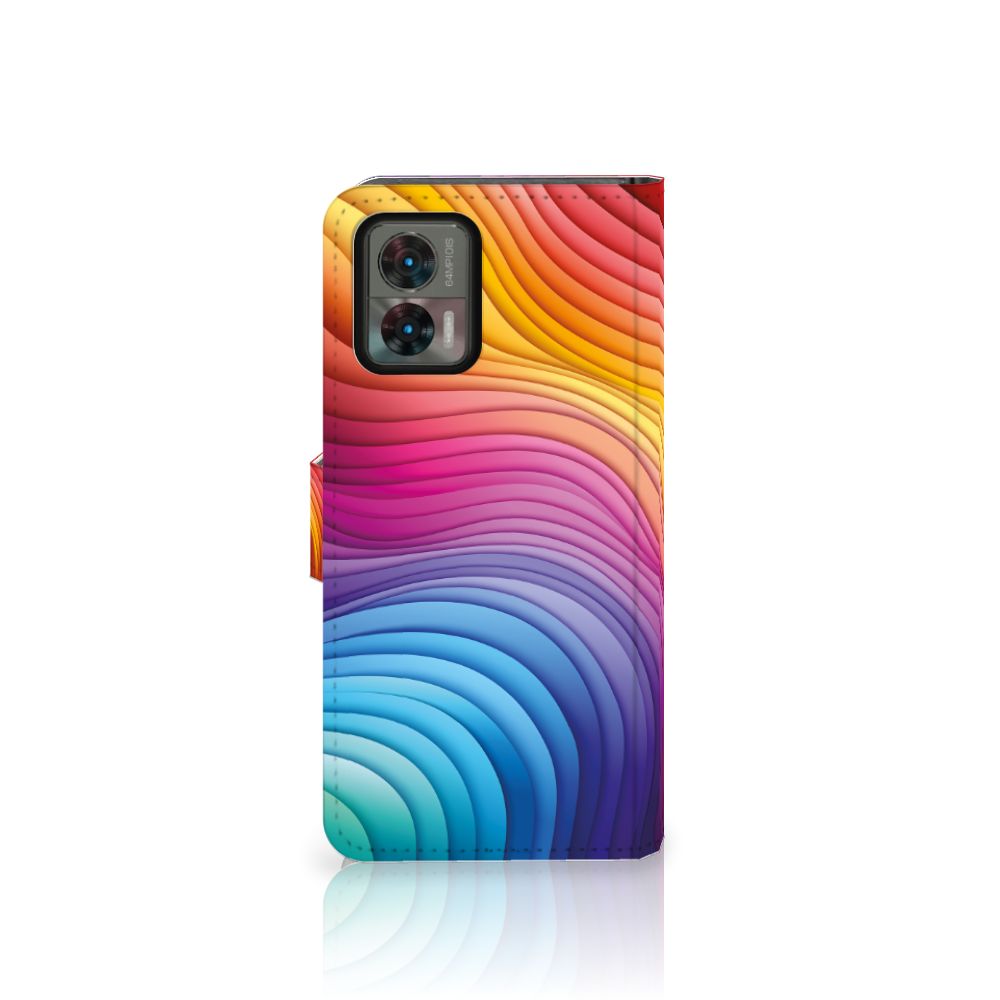 Een regenboog bestaat eigenlijk uit meer dan zeven kleuren, wist je dat? De zichtbare kleuren vloeien geleidelijk in elkaar over, waardoor er eigenlijk meer dan zeven kleuren zijn. Dat wij maar zeven ‘’stroken’’ licht zien, is dus eigenlijk gezichtsbedrog. Toch noemen wij dit hoesje regenboog, omdat wij er blij van worden! Dit design wordt geprint op een Book Case speciaal op maat gemaakt voor de Motorola Edge 30 Neo. In dit hoesje kun je drie pasjes kwijt, super handig toch? Het hoesje wordt afgesloten met een sluit lipje, waardoor jouw telefoon altijd goed beschermd is. Bescherm je Motorola Edge 30 Neo vandaag nog dit toffe regenboog hoesje!