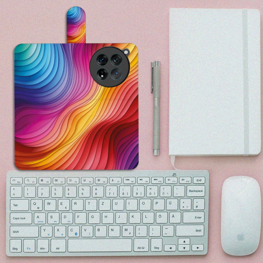 Een regenboog bestaat eigenlijk uit meer dan zeven kleuren, wist je dat? De zichtbare kleuren vloeien geleidelijk in elkaar over, waardoor er eigenlijk meer dan zeven kleuren zijn. Dat wij maar zeven ‘’stroken’’ licht zien, is dus eigenlijk gezichtsbedrog. Toch noemen wij dit hoesje regenboog, omdat wij er blij van worden! Dit design wordt geprint op een Book Case speciaal op maat gemaakt voor de OnePlus 12. In dit hoesje kun je drie pasjes kwijt, super handig toch? Het hoesje wordt afgesloten met een sluit lipje, waardoor jouw telefoon altijd goed beschermd is. Bescherm je OnePlus 12 vandaag nog dit toffe regenboog hoesje!