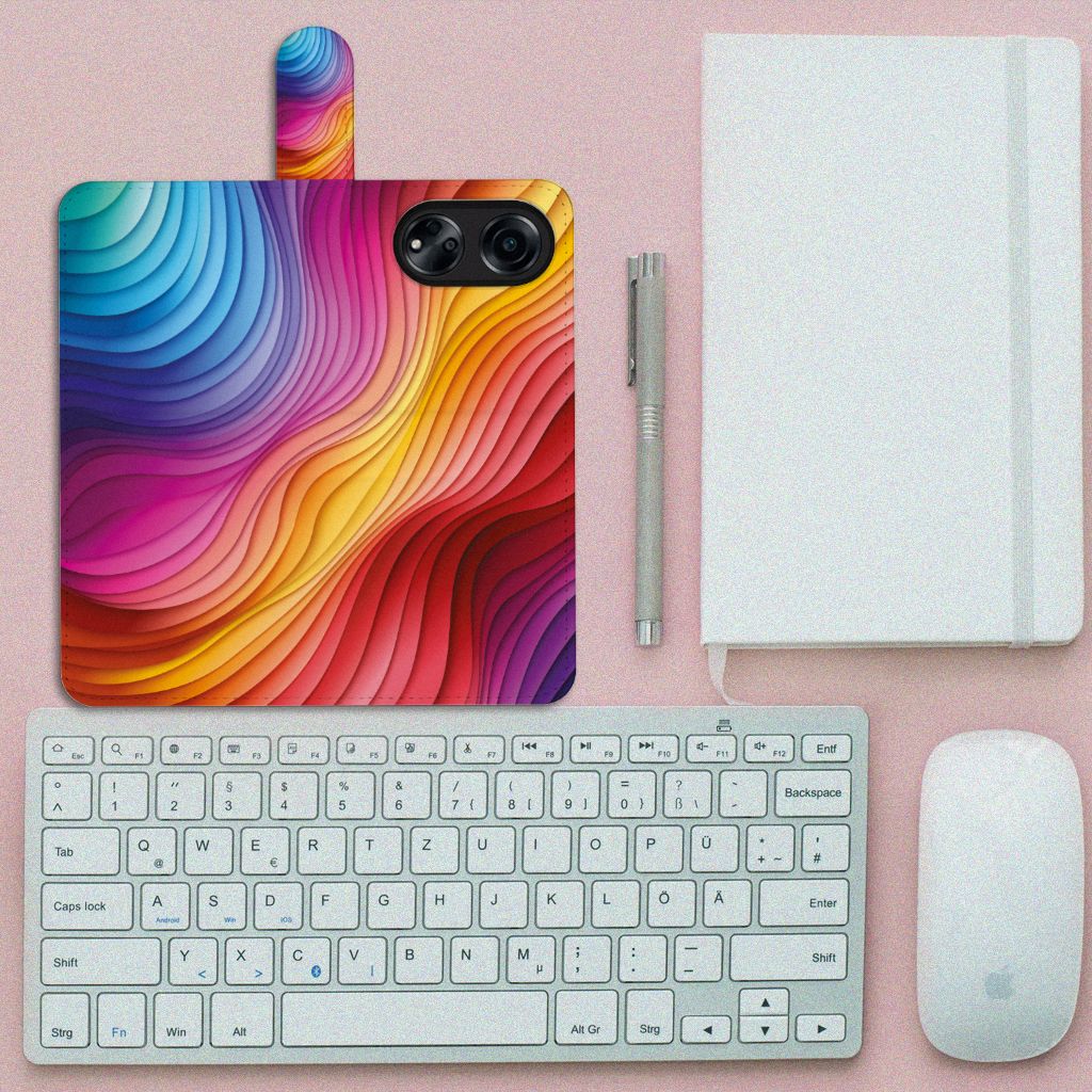 Een regenboog bestaat eigenlijk uit meer dan zeven kleuren, wist je dat? De zichtbare kleuren vloeien geleidelijk in elkaar over, waardoor er eigenlijk meer dan zeven kleuren zijn. Dat wij maar zeven ‘’stroken’’ licht zien, is dus eigenlijk gezichtsbedrog. Toch noemen wij dit hoesje regenboog, omdat wij er blij van worden! Dit design wordt geprint op een Book Case speciaal op maat gemaakt voor de OPPO A98 5G. In dit hoesje kun je drie pasjes kwijt, super handig toch? Het hoesje wordt afgesloten met een sluit lipje, waardoor jouw telefoon altijd goed beschermd is. Bescherm je OPPO A98 5G vandaag nog dit toffe regenboog hoesje!
