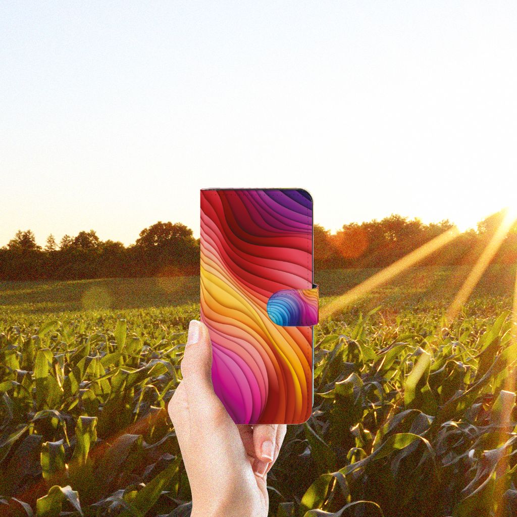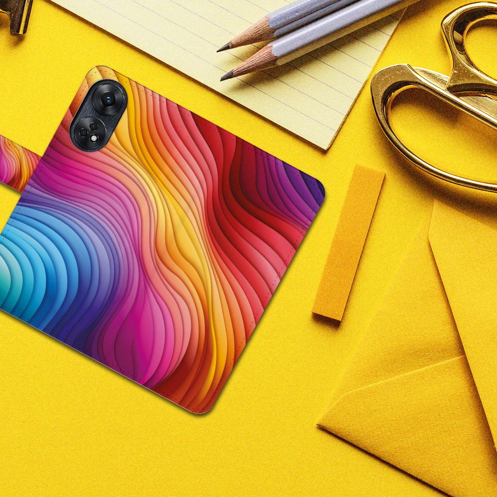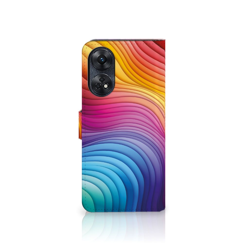 Een regenboog bestaat eigenlijk uit meer dan zeven kleuren, wist je dat? De zichtbare kleuren vloeien geleidelijk in elkaar over, waardoor er eigenlijk meer dan zeven kleuren zijn. Dat wij maar zeven ‘’stroken’’ licht zien, is dus eigenlijk gezichtsbedrog. Toch noemen wij dit hoesje regenboog, omdat wij er blij van worden! Dit design wordt geprint op een Book Case speciaal op maat gemaakt voor de OPPO Reno8 T 4G. In dit hoesje kun je drie pasjes kwijt, super handig toch? Het hoesje wordt afgesloten met een sluit lipje, waardoor jouw telefoon altijd goed beschermd is. Bescherm je OPPO Reno8 T 4G vandaag nog dit toffe regenboog hoesje!