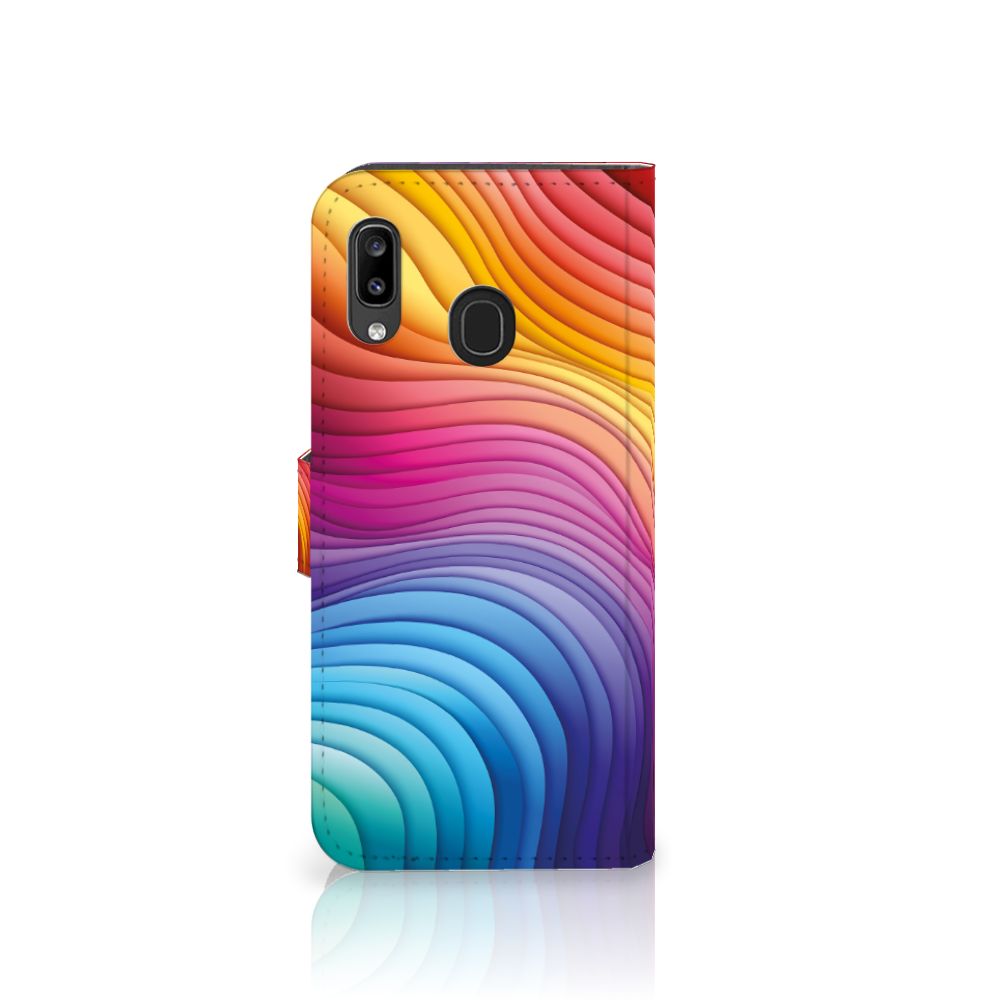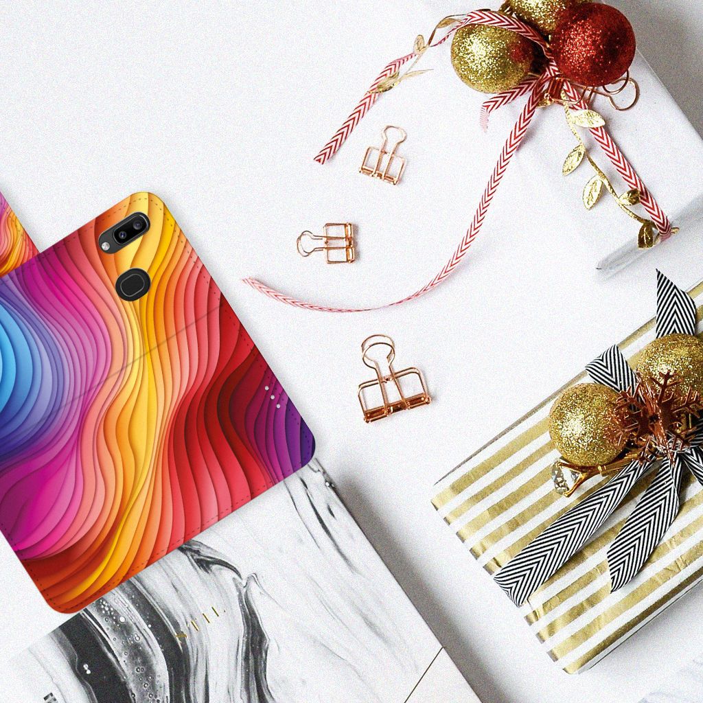 Een regenboog bestaat eigenlijk uit meer dan zeven kleuren, wist je dat? De zichtbare kleuren vloeien geleidelijk in elkaar over, waardoor er eigenlijk meer dan zeven kleuren zijn. Dat wij maar zeven ‘’stroken’’ licht zien, is dus eigenlijk gezichtsbedrog. Toch noemen wij dit hoesje regenboog, omdat wij er blij van worden! Dit design wordt geprint op een Book Case speciaal op maat gemaakt voor de Samsung Galaxy A30. In dit hoesje kun je drie pasjes kwijt, super handig toch? Het hoesje wordt afgesloten met een sluit lipje, waardoor jouw telefoon altijd goed beschermd is. Bescherm je Samsung Galaxy A30 vandaag nog dit toffe regenboog hoesje!