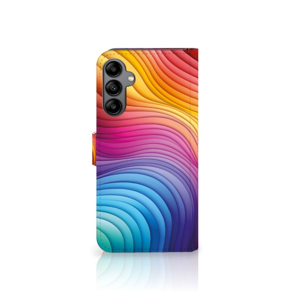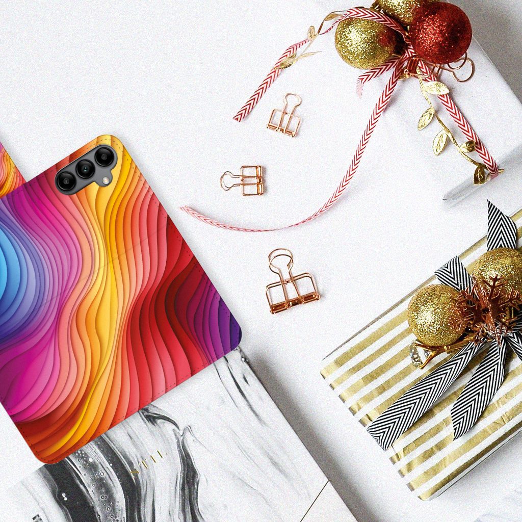 Een regenboog bestaat eigenlijk uit meer dan zeven kleuren, wist je dat? De zichtbare kleuren vloeien geleidelijk in elkaar over, waardoor er eigenlijk meer dan zeven kleuren zijn. Dat wij maar zeven ‘’stroken’’ licht zien, is dus eigenlijk gezichtsbedrog. Toch noemen wij dit hoesje regenboog, omdat wij er blij van worden! Dit design wordt geprint op een Book Case speciaal op maat gemaakt voor de Samsung Galaxy A34. In dit hoesje kun je drie pasjes kwijt, super handig toch? Het hoesje wordt afgesloten met een sluit lipje, waardoor jouw telefoon altijd goed beschermd is. Bescherm je Samsung Galaxy A34 vandaag nog dit toffe regenboog hoesje!