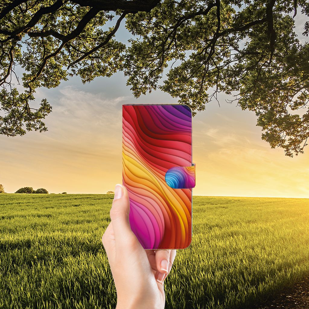 Een regenboog bestaat eigenlijk uit meer dan zeven kleuren, wist je dat? De zichtbare kleuren vloeien geleidelijk in elkaar over, waardoor er eigenlijk meer dan zeven kleuren zijn. Dat wij maar zeven ‘’stroken’’ licht zien, is dus eigenlijk gezichtsbedrog. Toch noemen wij dit hoesje regenboog, omdat wij er blij van worden! Dit design wordt geprint op een Book Case speciaal op maat gemaakt voor de Samsung Galaxy M14. In dit hoesje kun je drie pasjes kwijt, super handig toch? Het hoesje wordt afgesloten met een sluit lipje, waardoor jouw telefoon altijd goed beschermd is. Bescherm je Samsung Galaxy M14 vandaag nog dit toffe regenboog hoesje!