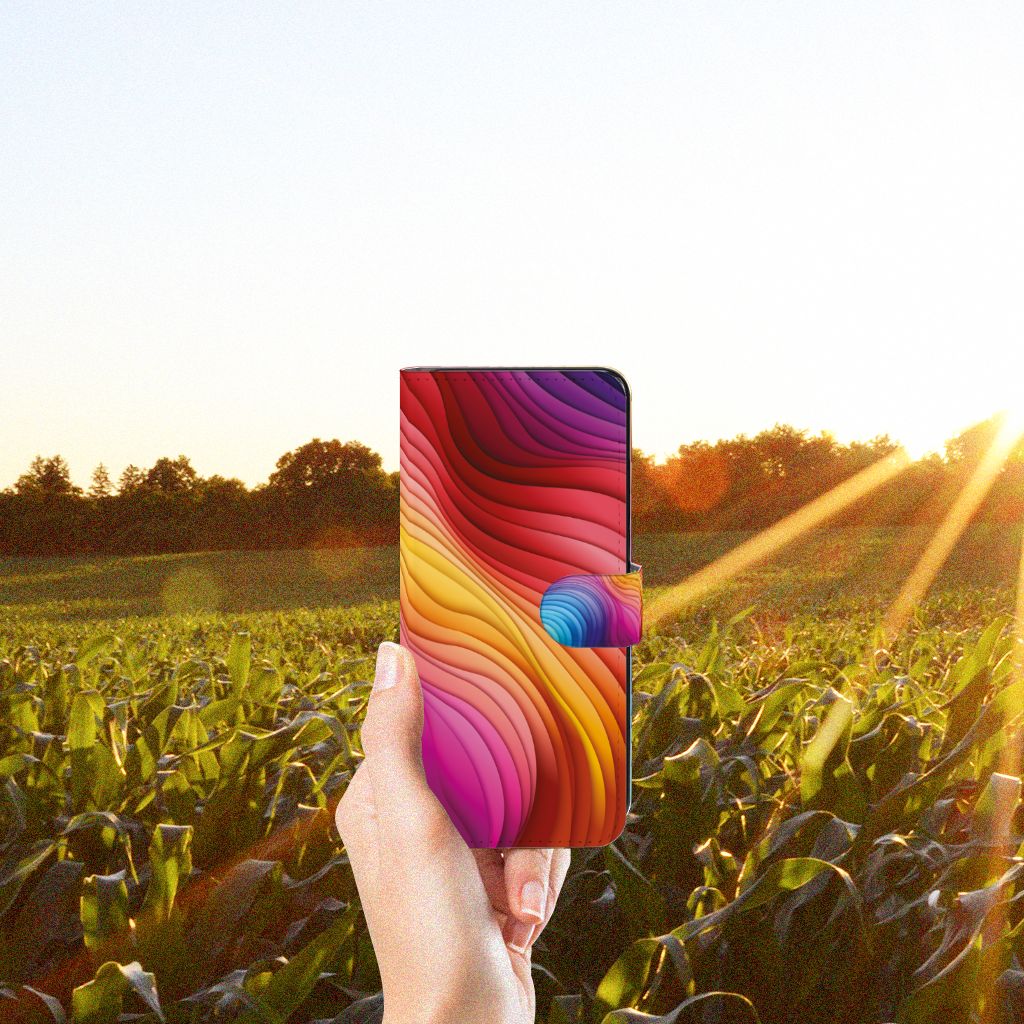 Een regenboog bestaat eigenlijk uit meer dan zeven kleuren, wist je dat? De zichtbare kleuren vloeien geleidelijk in elkaar over, waardoor er eigenlijk meer dan zeven kleuren zijn. Dat wij maar zeven ‘’stroken’’ licht zien, is dus eigenlijk gezichtsbedrog. Toch noemen wij dit hoesje regenboog, omdat wij er blij van worden! Dit design wordt geprint op een Book Case speciaal op maat gemaakt voor de Samsung Galaxy M53. In dit hoesje kun je drie pasjes kwijt, super handig toch? Het hoesje wordt afgesloten met een sluit lipje, waardoor jouw telefoon altijd goed beschermd is. Bescherm je Samsung Galaxy M53 vandaag nog dit toffe regenboog hoesje!