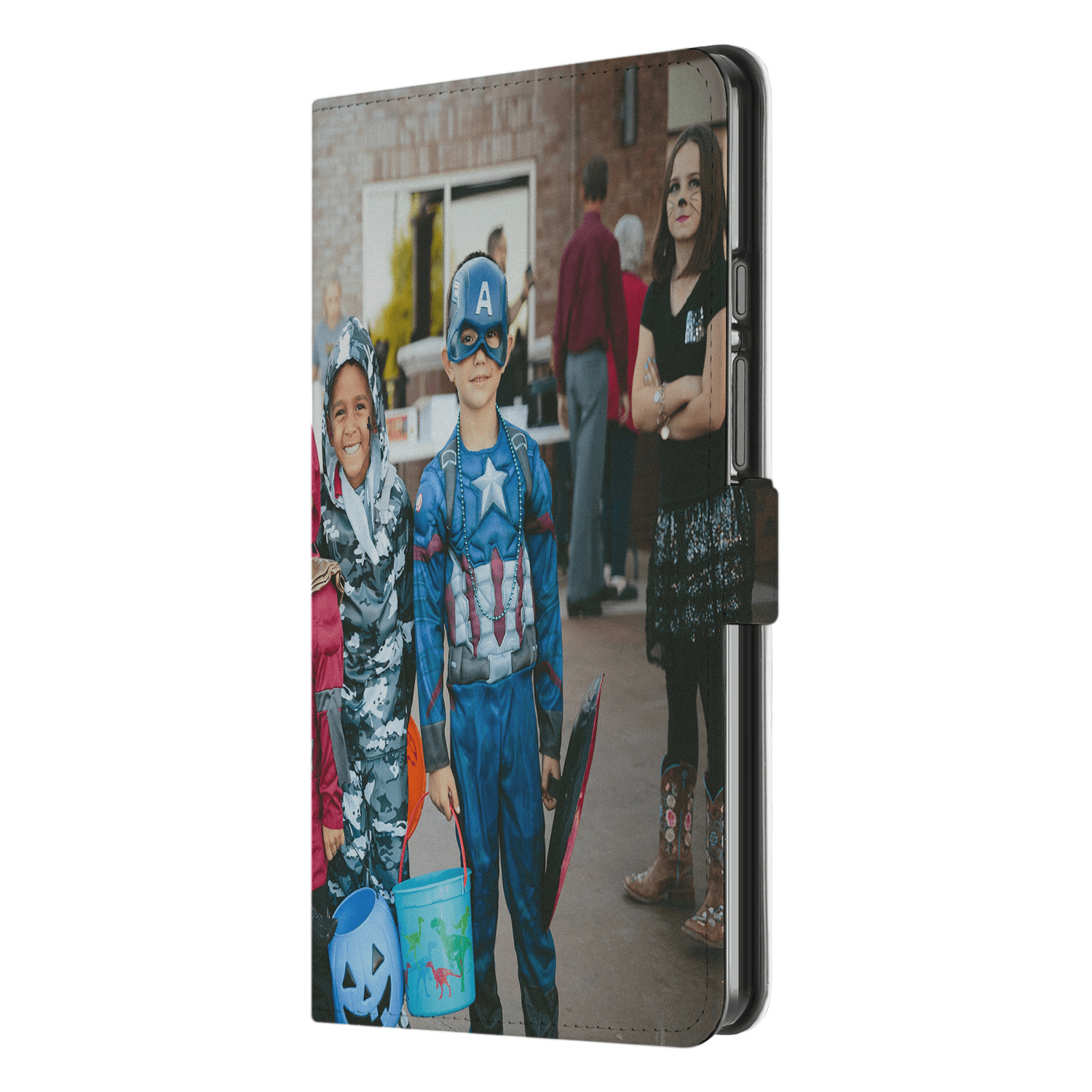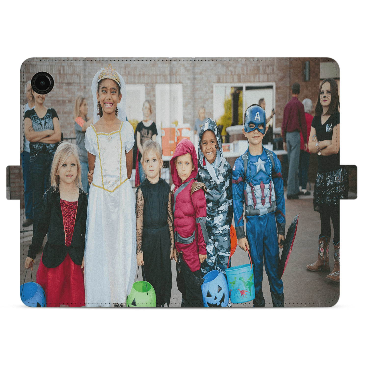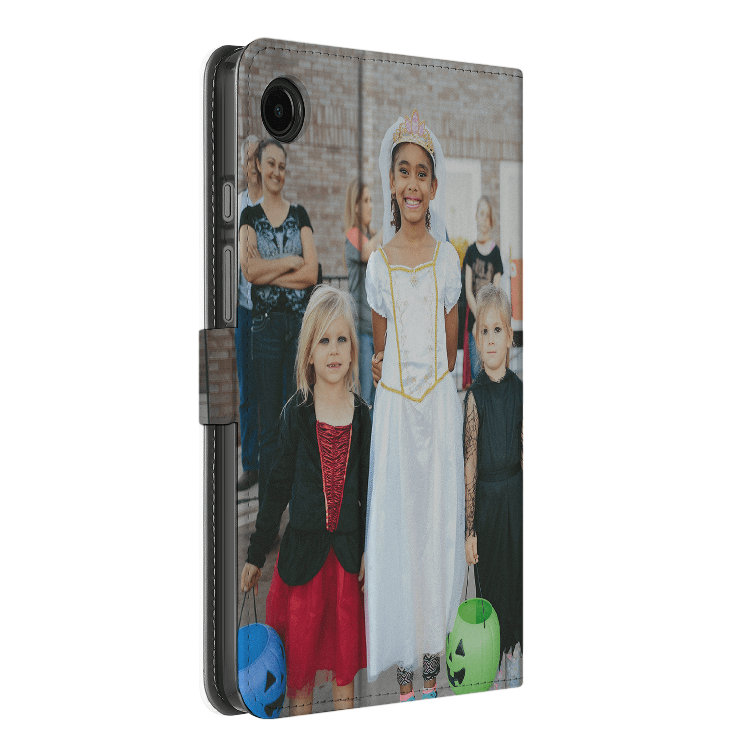 Book Cover Tablet Hoesje Maken voor de Samsung Galaxy Tab A9. Ben je op zoek naar een originele en unieke bescherming voor je tablet? Dan ben je bij B2C Telecom aan het juiste adres! Je kunt via onze website gemakkelijk een telefoon- of tablethoesje ontwerpen met foto's, tekst of bedrijfslogo. De mogelijkheden zijn eindeloos. Wees creatief en upload foto's of plaatjes van je kinderen, huisdieren, familie, hobby of favoriete voetbalclub. De foto's of plaatjes kun je in de gewenste grootte plaatsen of draaien voor een speels effect. Maak het hoesje persoonlijker door je naam of quote toe te voegen. Je kunt kiezen uit verschillende lettertypes; van strak tot vetgedrukt of ga je liever voor iets sierlijks? Het kan allemaal! De kers op de taart is natuurlijk de toevoeging van een glossy-effect! Kies uit verschillende effecten en jouw hoesje wordt subtiel bedrukt met een glossy-effect. Kortom, wij bieden verschillende mogelijkheden om jouw hoesje zo persoonlijk en uniek mogelijk te maken! Jouw ontwerp wordt bedrukt op een wit hoesje gemaakt van kunstleer. De binnenkant van het hoesje is donkergrijs en je kunt het hoesje in twee standen horizontaal neerzetten. De houder waar je je tablet in vast zet, is gemaakt van TPU. Door het lipje aan de zijkant blijft het hoesje goed dicht. Overtuigd? Ontwerp dan vandaag nog je eigen tablethoesje en ontvang jouw ontwerp binnen een aantal werkdagen in huis!