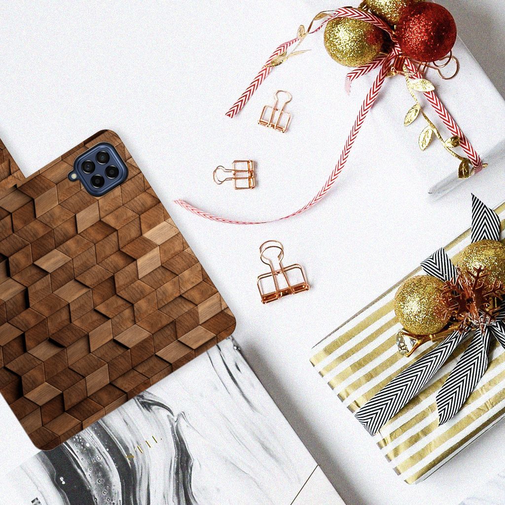 Onze houten hoesjes, niet letterlijk natuurlijk, maar onze design hoesjes met een bedrukking van houtprint zijn erg populair. Daarom werd het tijd voor een uitbreiding van onze collectie houten hoesjes. Hoe tof is dit wooden cubes design? Gegarandeerd dat jij met een uniek hoesje rond loopt! Dit design wordt geprint op een Book Style Case speciaal op maat gemaakt voor de Samsung Galaxy M53. Het ligt prettig in de hand en is licht van gewicht. Het is een mix van hardcase en TPU. Deze combinatie samen zorgt wat ons betreft voor een perfect hoesje als je van niet te veel poespas houdt. Alleen de achterkant van je telefoon wordt beschermd. Daarom adviseren wij om dit hoesje in combinatie met een screenprotector te gebruiken. Bestel vandaag nog dit toffe wooden cubes hoesje!