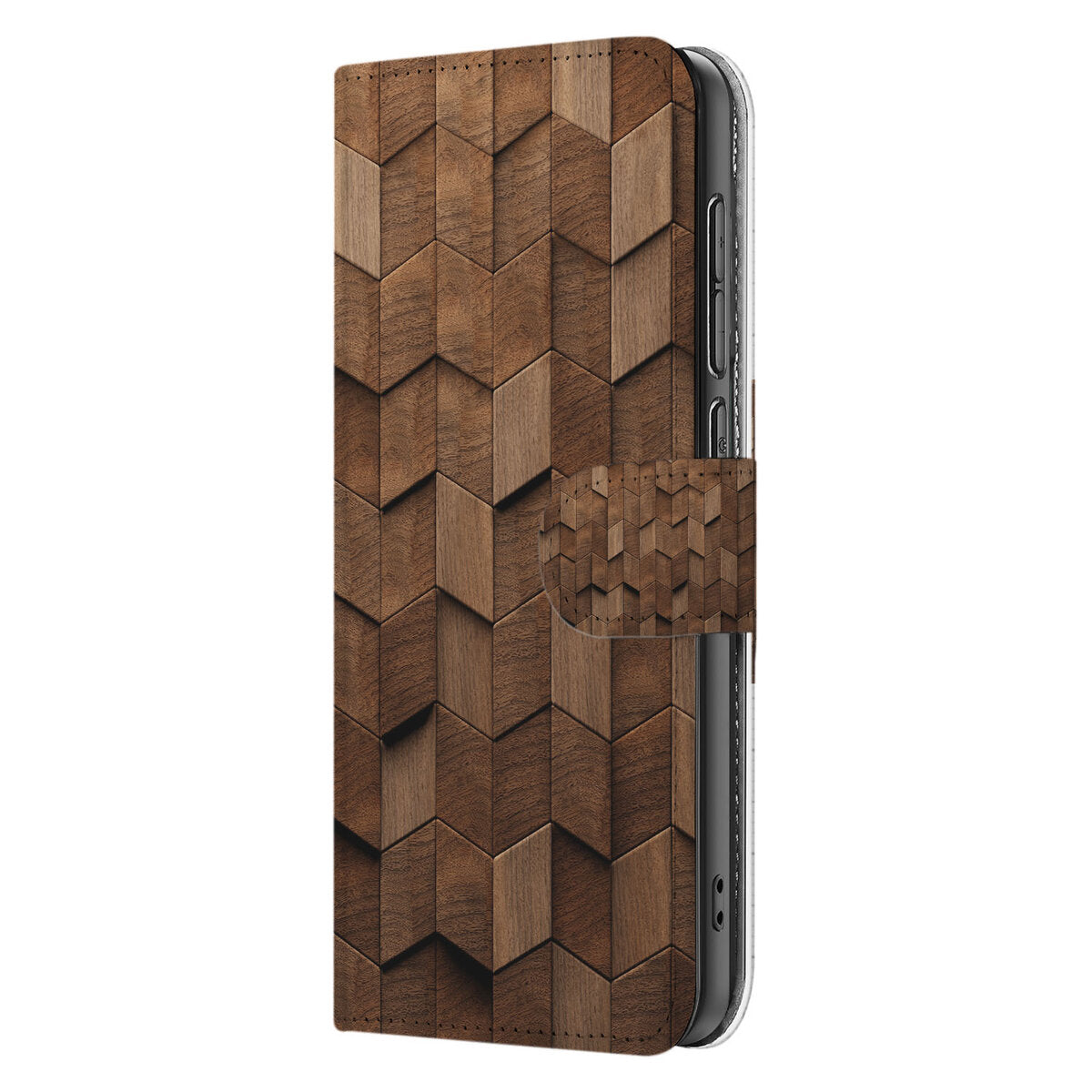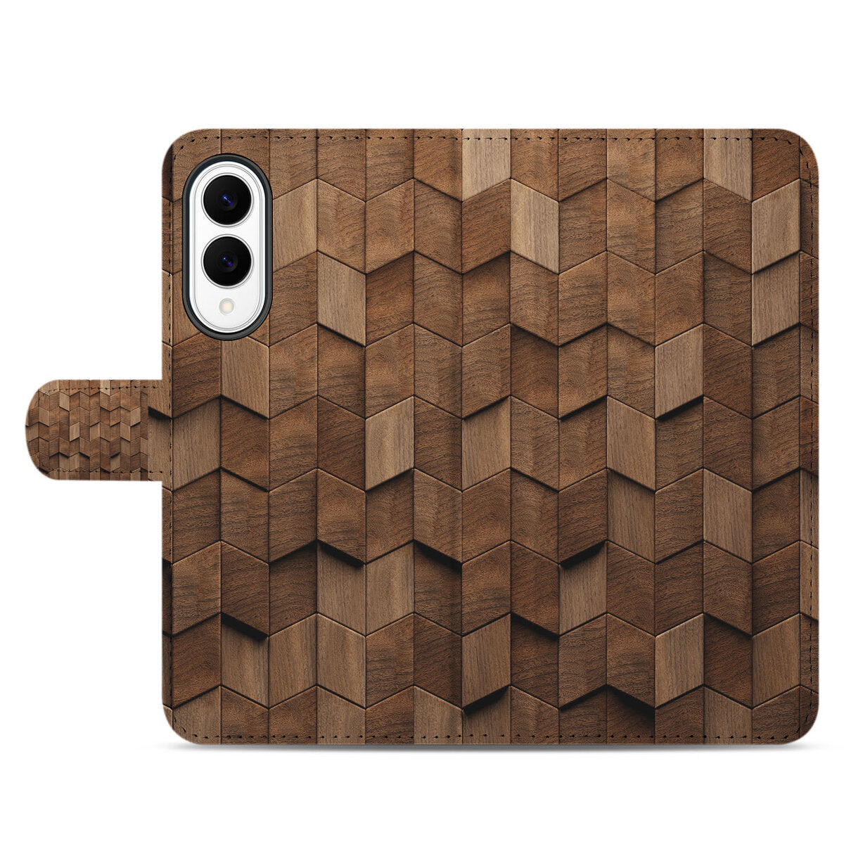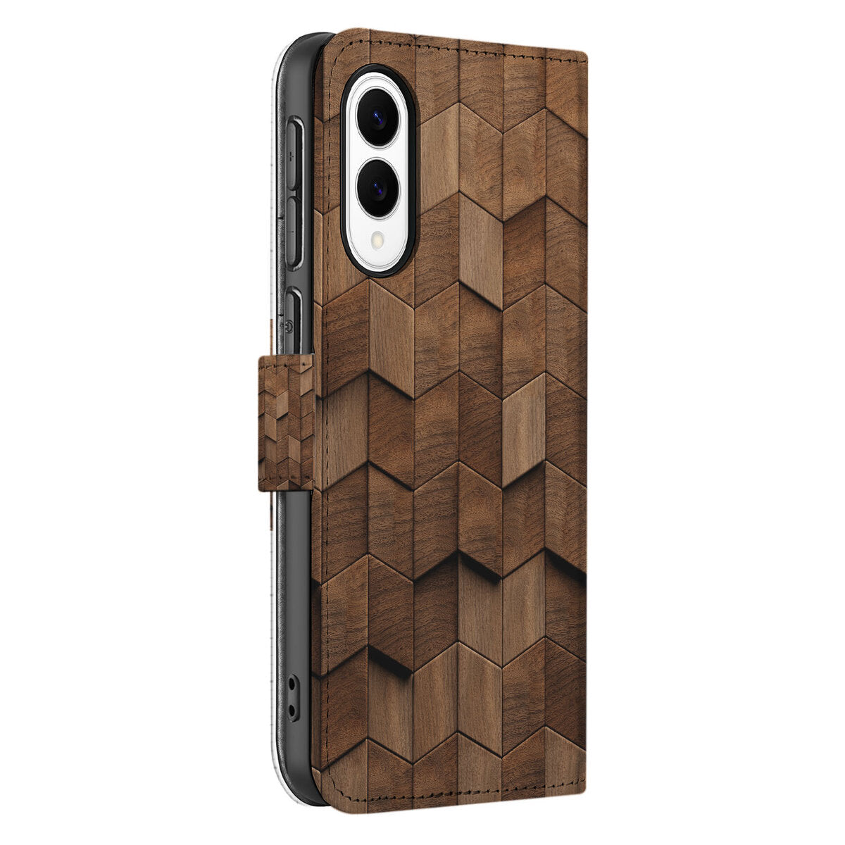Bescherm je Samsung Galaxy S25 Edge in stijl met dit book case hoesje. Het unieke Wooden Cubes-design maakt van je telefoon een persoonlijk accessoire.