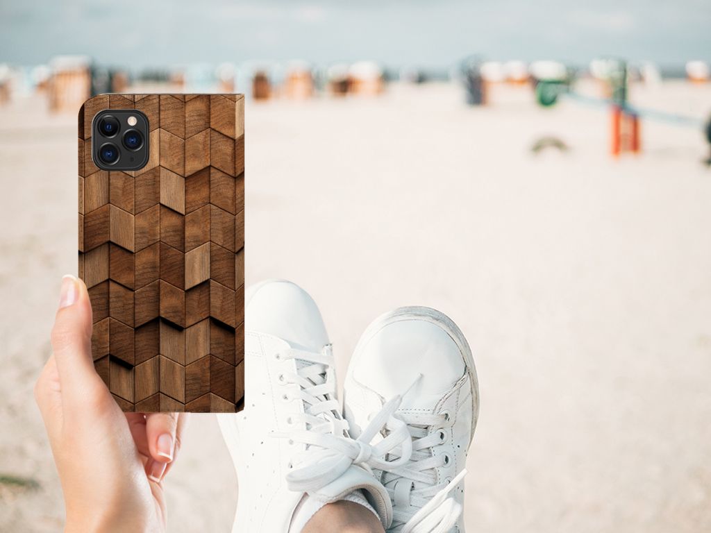 Onze houten hoesjes, niet letterlijk natuurlijk, maar onze design hoesjes met een bedrukking van hout print zijn erg populair. Daarom werd het tijd voor een uitbreiding van onze collectie houten hoesjes. Hoe tof is dit wooden cubes design? Gegarandeerd dat jij met een uniek hoesje rond loopt! Dit design wordt geprint op een Book Wallet Case speciaal op maat gemaakt voor de Apple iPhone 11 Pro Max. In dit hoesje kun je een pasje kwijt, super fijn toch? Vouw het hoesje om en zet het horizontaal neer voor als je graag filmpjes op je Apple iPhone 11 Pro Max kijkt. De magneten aan de binnenkant zorgen ervoor dat het hoesje dicht blijft in bijv. je tas. Bescherm jouw smartphone vandaag nog met dit wooden cubes hoesje!