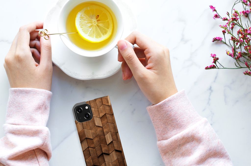 Onze houten hoesjes, niet letterlijk natuurlijk, maar onze design hoesjes met een bedrukking van hout print zijn erg populair. Daarom werd het tijd voor een uitbreiding van onze collectie houten hoesjes. Hoe tof is dit wooden cubes design? Gegarandeerd dat jij met een uniek hoesje rond loopt! Dit design wordt geprint op een Book Wallet Case speciaal op maat gemaakt voor de iPhone 13 Mini. In dit hoesje kun je een pasje kwijt, super fijn toch? Vouw het hoesje om en zet het horizontaal neer voor als je graag filmpjes op je iPhone 13 Mini kijkt. De magneten aan de binnenkant zorgen ervoor dat het hoesje dicht blijft in bijv. je tas. Bescherm jouw smartphone vandaag nog met dit wooden cubes hoesje!