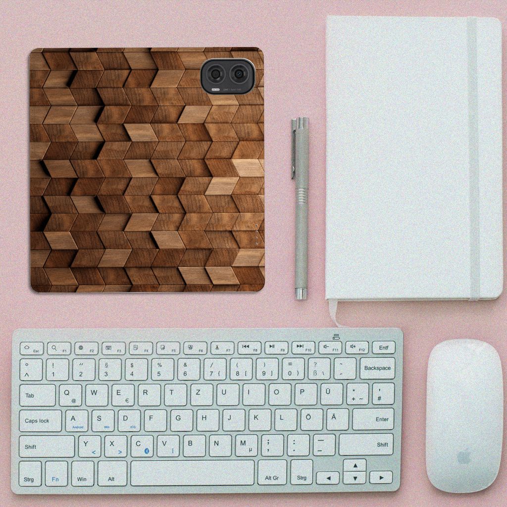 Onze houten hoesjes, niet letterlijk natuurlijk, maar onze design hoesjes met een bedrukking van hout print zijn erg populair. Daarom werd het tijd voor een uitbreiding van onze collectie houten hoesjes. Hoe tof is dit wooden cubes design? Gegarandeerd dat jij met een uniek hoesje rond loopt! Dit design wordt geprint op een Book Wallet Case speciaal op maat gemaakt voor de Motorola Moto G24 | G04 | G24 Power. In dit hoesje kun je een pasje kwijt, super fijn toch? Vouw het hoesje om en zet het horizontaal neer voor als je graag filmpjes op je Motorola Moto G24 | G04 | G24 Power kijkt. De magneten aan de binnenkant zorgen ervoor dat het hoesje dicht blijft in bijv. je tas. Bescherm jouw smartphone vandaag nog met dit wooden cubes hoesje!