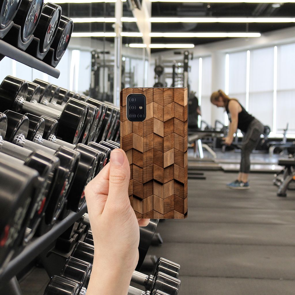 Onze houten hoesjes, niet letterlijk natuurlijk, maar onze design hoesjes met een bedrukking van hout print zijn erg populair. Daarom werd het tijd voor een uitbreiding van onze collectie houten hoesjes. Hoe tof is dit wooden cubes design? Gegarandeerd dat jij met een uniek hoesje rond loopt! Dit design wordt geprint op een Book Wallet Case speciaal op maat gemaakt voor de Samsung Galaxy A51. In dit hoesje kun je een pasje kwijt, super fijn toch? Vouw het hoesje om en zet het horizontaal neer voor als je graag filmpjes op je Samsung Galaxy A51 kijkt. De magneten aan de binnenkant zorgen ervoor dat het hoesje dicht blijft in bijv. je tas. Bescherm jouw smartphone vandaag nog met dit wooden cubes hoesje!