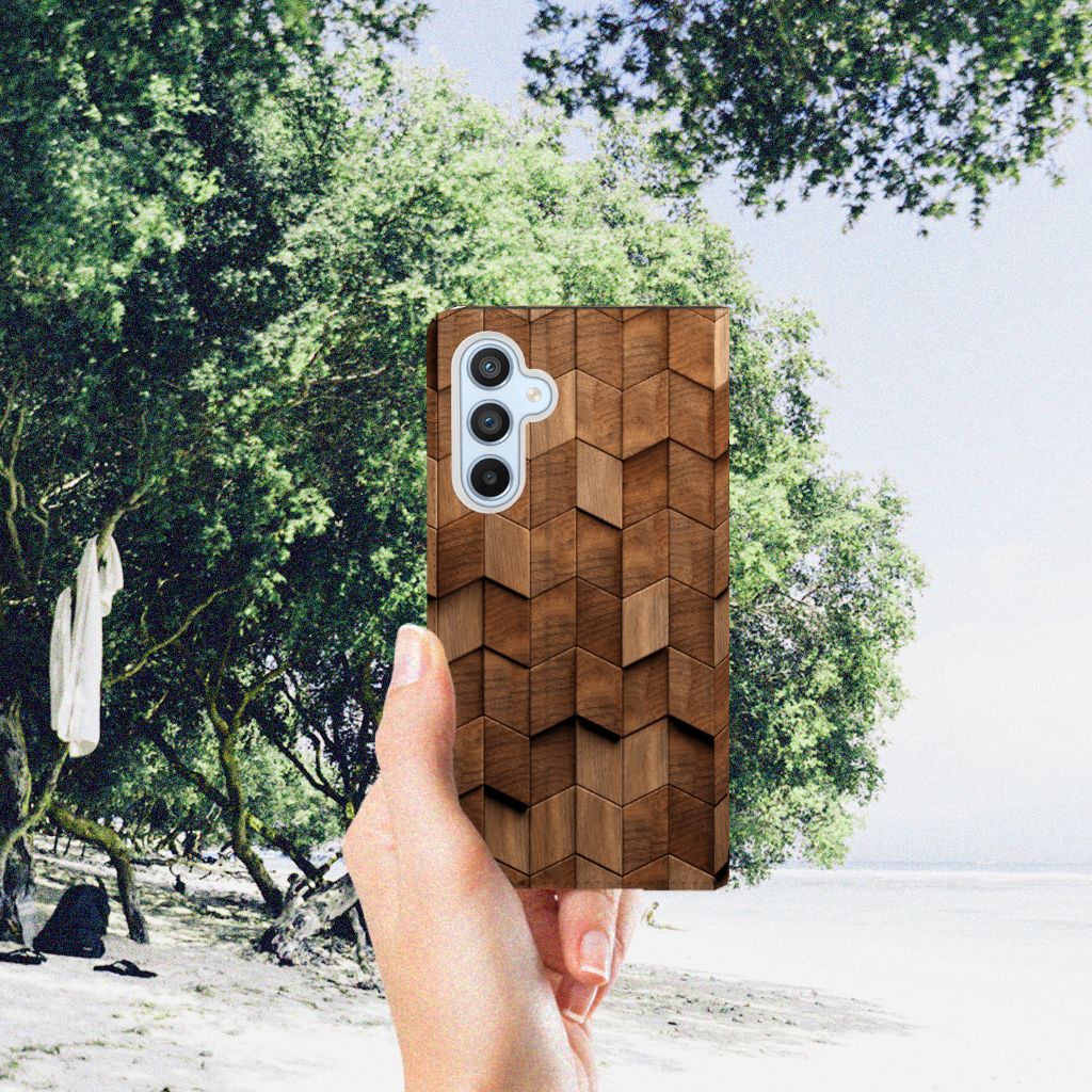 Onze houten hoesjes, niet letterlijk natuurlijk, maar onze design hoesjes met een bedrukking van hout print zijn erg populair. Daarom werd het tijd voor een uitbreiding van onze collectie houten hoesjes. Hoe tof is dit wooden cubes design? Gegarandeerd dat jij met een uniek hoesje rond loopt! Dit design wordt geprint op een Book Wallet Case speciaal op maat gemaakt voor de Samsung Galaxy A54. In dit hoesje kun je een pasje kwijt, super fijn toch? Vouw het hoesje om en zet het horizontaal neer voor als je graag filmpjes op je Samsung Galaxy A54 kijkt. De magneten aan de binnenkant zorgen ervoor dat het hoesje dicht blijft in bijv. je tas. Bescherm jouw smartphone vandaag nog met dit wooden cubes hoesje!