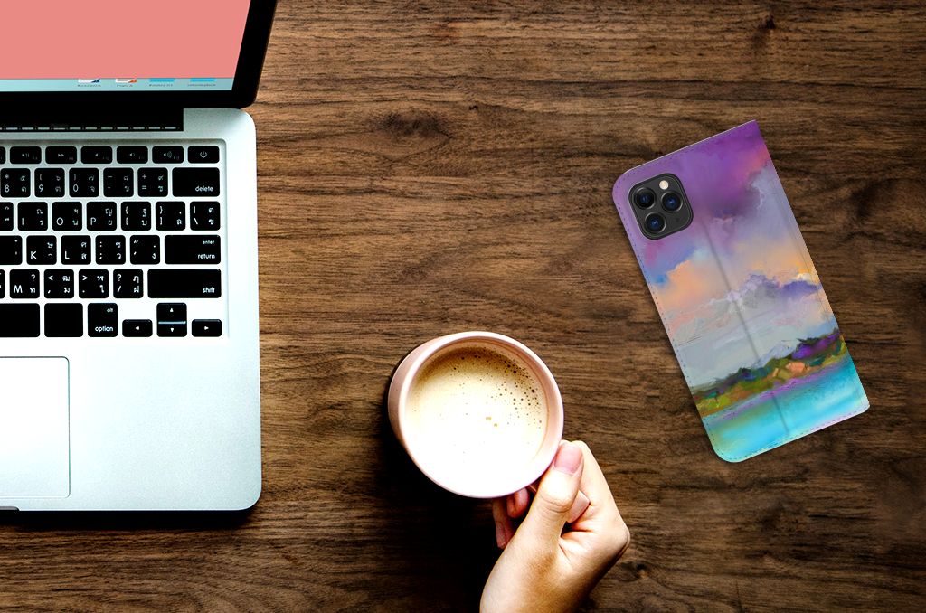 Het mooie ontwerp op dit hoesje zou je zo aan de muur willen hangen. Dit abstracte ‘schilderij’ van een bootje op een meer valt op vanwege de prachtige tinten blauw en paars. Een prachtig hoesje voor de liefhebber van kunst, boten en landschappen. Met een Bookcase is je Apple iPhone 11 Pro Max goed beschermd. Dit populaire smartphonehoesje heeft één vakje voor een pasje of briefgeld en is aan alle zijden bedrukt. Met de standcase zet je je telefoon gemakkelijk neer, zodat je je handen vrij hebt als je bijvoorbeeld een video wilt kijken. De binnenkant van de standcase is van grijs PU-leer. Dat is fijn, omdat je daardoor niet snel vlekken ziet op je hoesje.