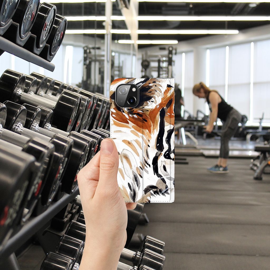 Omdat we tijgers zo bijzonder vinden, hebben we besloten deze voor zeer lage kosten voor jou op een Apple iPhone 14 Plus Bookcase te zetten. Dit kunnen we goedkoop doen omdat we het drukwerk in eigen beheer doen. De tijger staat geschilderd op de stand case tegen een grijs met wit geblokte achtergrond. De Watercolor Tiger kunnen we bedrukken op verschillende soorten hoesjes, zoals deze stand cases. Het hoesje met geschilderde tijger tegen grijs met witte achtergrond is van PU-leer (buitenzijde) en TPU (binnenzijde) en beschikt een houder voor bijvoorbeeld je bankpas. Verder is de stand case met geschilderde tijger voorzien van een magnetische sluiting aan de binnenzijde. Jij zorgt voor de perfecte bescherming van je smartphone met dit stand hoesje met geschilderde tijger tegen een grijs met witte achtergrond.