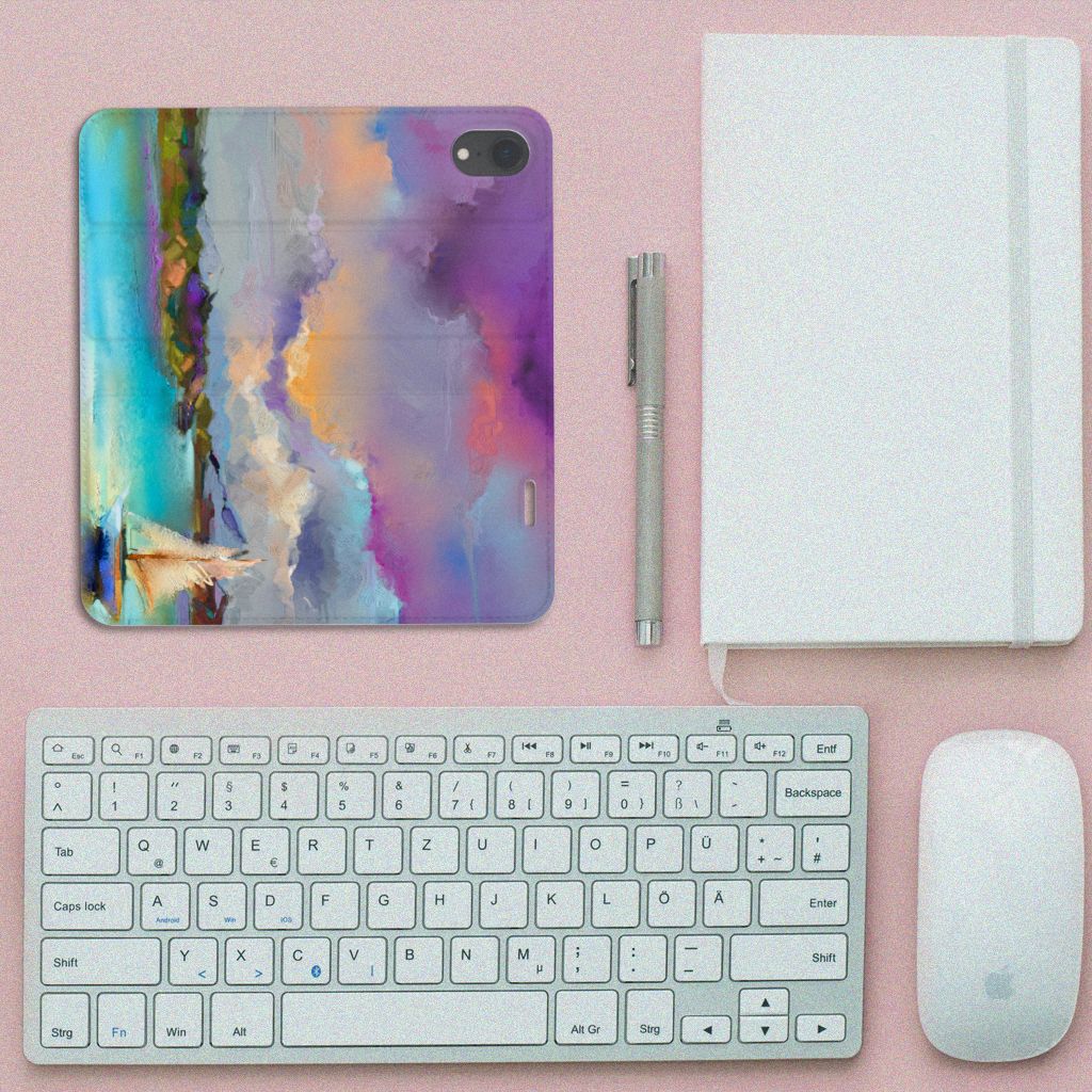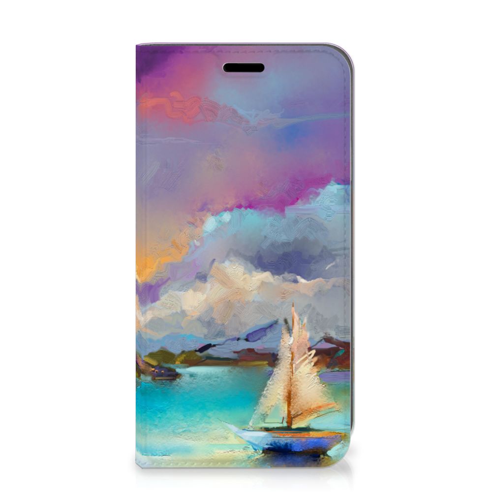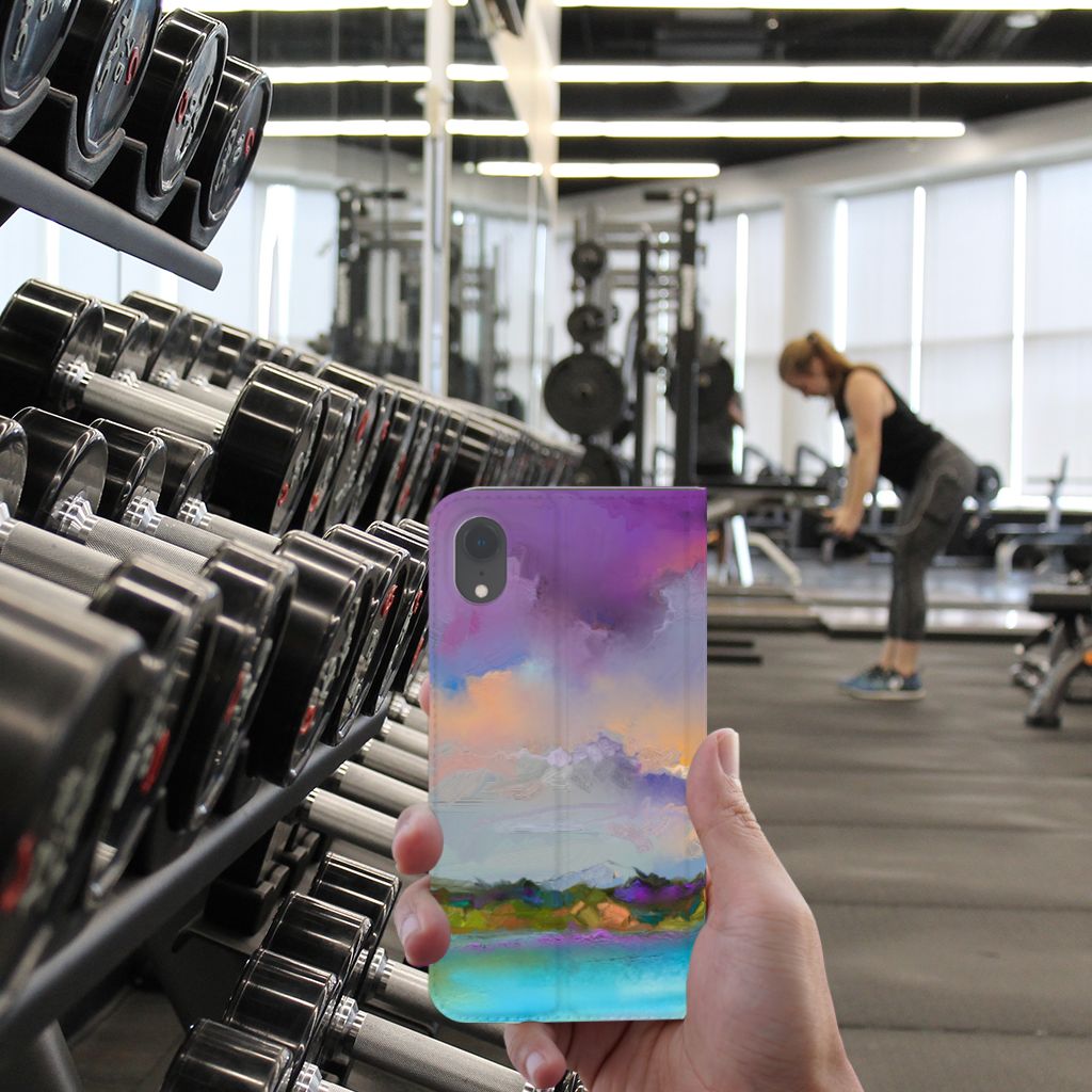 Het mooie ontwerp op dit hoesje zou je zo aan de muur willen hangen. Dit abstracte ‘schilderij’ van een bootje op een meer valt op vanwege de prachtige tinten blauw en paars. Een prachtig hoesje voor de liefhebber van kunst, boten en landschappen. Met een Bookcase is je Apple iPhone Xr goed beschermd. Dit populaire smartphonehoesje heeft één vakje voor een pasje of briefgeld en is aan alle zijden bedrukt. Met de standcase zet je je telefoon gemakkelijk neer, zodat je je handen vrij hebt als je bijvoorbeeld een video wilt kijken. De binnenkant van de standcase is van grijs PU-leer. Dat is fijn, omdat je daardoor niet snel vlekken ziet op je hoesje.
