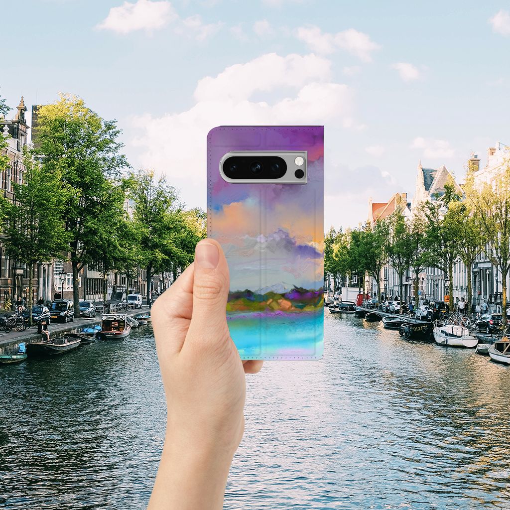 Het mooie ontwerp op dit hoesje zou je zo aan de muur willen hangen. Dit abstracte ‘schilderij’ van een bootje op een meer valt op vanwege de prachtige tinten blauw en paars. Een prachtig hoesje voor de liefhebber van kunst, boten en landschappen. Met een Bookcase is je Google Pixel 8 Pro goed beschermd. Dit populaire smartphonehoesje heeft één vakje voor een pasje of briefgeld en is aan alle zijden bedrukt. Met de standcase zet je je telefoon gemakkelijk neer, zodat je je handen vrij hebt als je bijvoorbeeld een video wilt kijken. De binnenkant van de standcase is van grijs PU-leer. Dat is fijn, omdat je daardoor niet snel vlekken ziet op je hoesje.