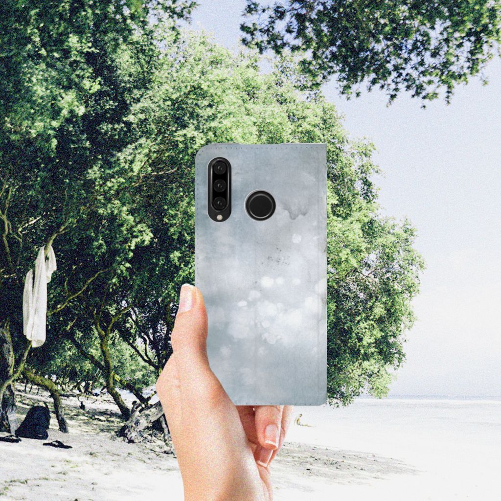 Huawei P30 Lite (2020) Bookcase Marble Pink - Origineel Cadeau Vriendin