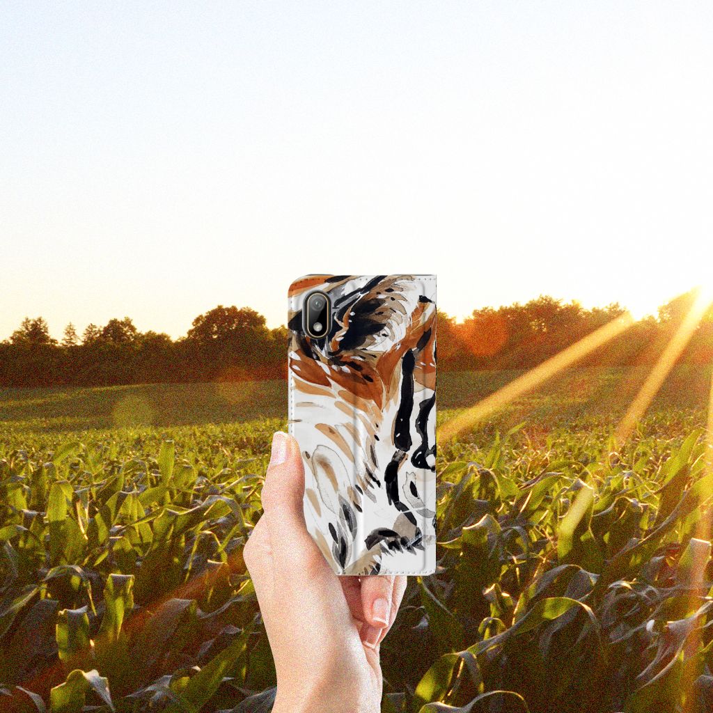 Omdat we tijgers zo bijzonder vinden, hebben we besloten deze voor zeer lage kosten voor jou op een Huawei Y5 (2019) Bookcase te zetten. Dit kunnen we goedkoop doen omdat we het drukwerk in eigen beheer doen. De tijger staat geschilderd op de stand case tegen een grijs met wit geblokte achtergrond. De Watercolor Tiger kunnen we bedrukken op verschillende soorten hoesjes, zoals deze stand cases. Het hoesje met geschilderde tijger tegen grijs met witte achtergrond is van PU-leer (buitenzijde) en TPU (binnenzijde) en beschikt een houder voor bijvoorbeeld je bankpas. Verder is de stand case met geschilderde tijger voorzien van een magnetische sluiting aan de binnenzijde. Jij zorgt voor de perfecte bescherming van je smartphone met dit stand hoesje met geschilderde tijger tegen een grijs met witte achtergrond.