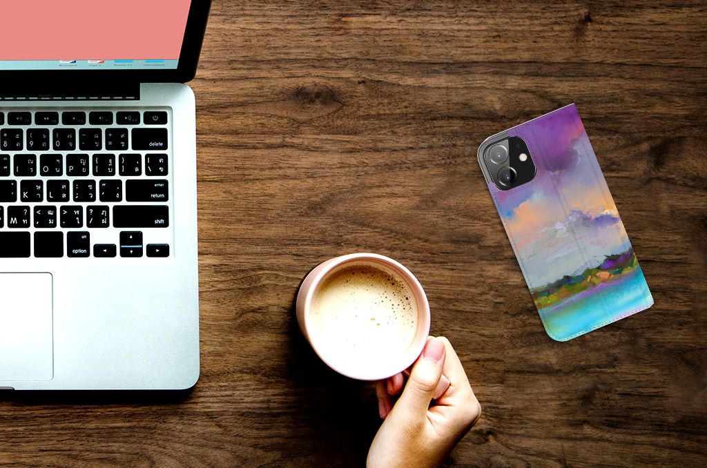 Het mooie ontwerp op dit hoesje zou je zo aan de muur willen hangen. Dit abstracte ‘schilderij’ van een bootje op een meer valt op vanwege de prachtige tinten blauw en paars. Een prachtig hoesje voor de liefhebber van kunst, boten en landschappen. Met een Bookcase is je iPhone 12 | iPhone 12 Pro goed beschermd. Dit populaire smartphonehoesje heeft één vakje voor een pasje of briefgeld en is aan alle zijden bedrukt. Met de standcase zet je je telefoon gemakkelijk neer, zodat je je handen vrij hebt als je bijvoorbeeld een video wilt kijken. De binnenkant van de standcase is van grijs PU-leer. Dat is fijn, omdat je daardoor niet snel vlekken ziet op je hoesje.