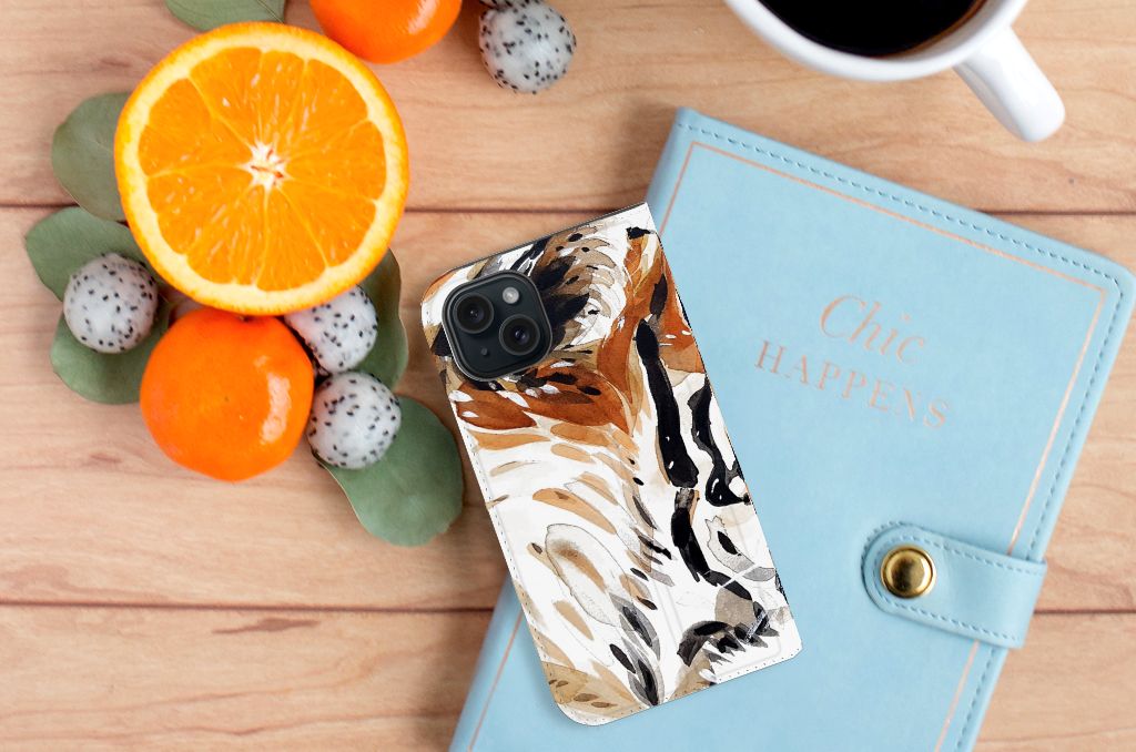 Omdat we tijgers zo bijzonder vinden, hebben we besloten deze voor zeer lage kosten voor jou op een iPhone 15 Bookcase te zetten. Dit kunnen we goedkoop doen omdat we het drukwerk in eigen beheer doen. De tijger staat geschilderd op de stand case tegen een grijs met wit geblokte achtergrond. De Watercolor Tiger kunnen we bedrukken op verschillende soorten hoesjes, zoals deze stand cases. Het hoesje met geschilderde tijger tegen grijs met witte achtergrond is van PU-leer (buitenzijde) en TPU (binnenzijde) en beschikt een houder voor bijvoorbeeld je bankpas. Verder is de stand case met geschilderde tijger voorzien van een magnetische sluiting aan de binnenzijde. Jij zorgt voor de perfecte bescherming van je smartphone met dit stand hoesje met geschilderde tijger tegen een grijs met witte achtergrond.