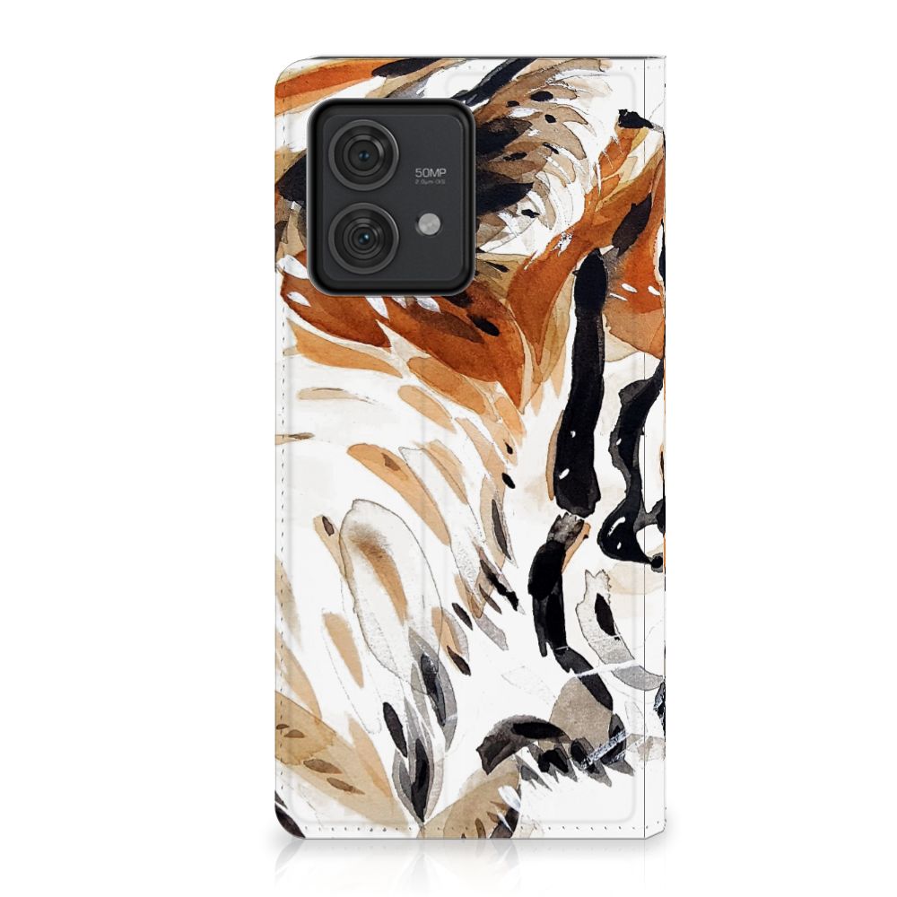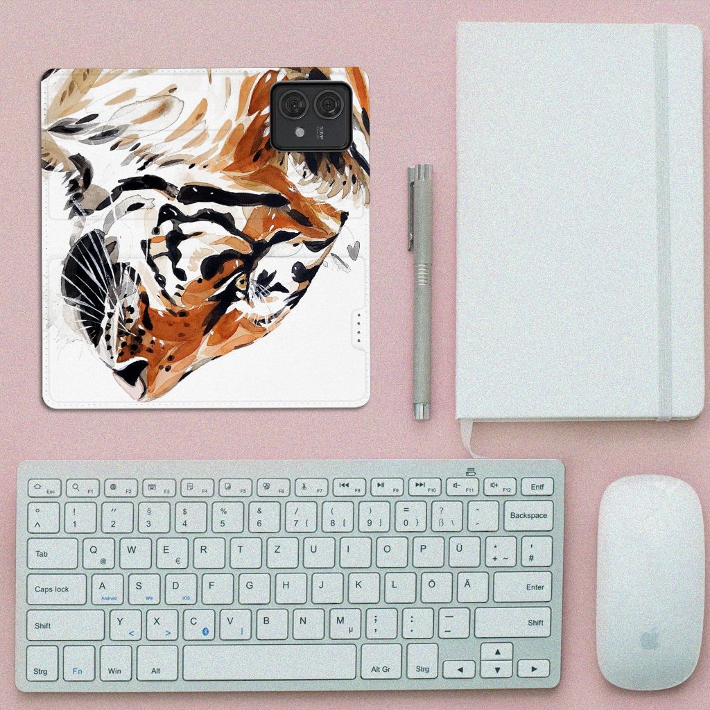 Omdat we tijgers zo bijzonder vinden, hebben we besloten deze voor zeer lage kosten voor jou op een Motorola Edge 40 Neo Bookcase te zetten. Dit kunnen we goedkoop doen omdat we het drukwerk in eigen beheer doen. De tijger staat geschilderd op de stand case tegen een grijs met wit geblokte achtergrond. De Watercolor Tiger kunnen we bedrukken op verschillende soorten hoesjes, zoals deze stand cases. Het hoesje met geschilderde tijger tegen grijs met witte achtergrond is van PU-leer (buitenzijde) en TPU (binnenzijde) en beschikt een houder voor bijvoorbeeld je bankpas. Verder is de stand case met geschilderde tijger voorzien van een magnetische sluiting aan de binnenzijde. Jij zorgt voor de perfecte bescherming van je smartphone met dit stand hoesje met geschilderde tijger tegen een grijs met witte achtergrond.