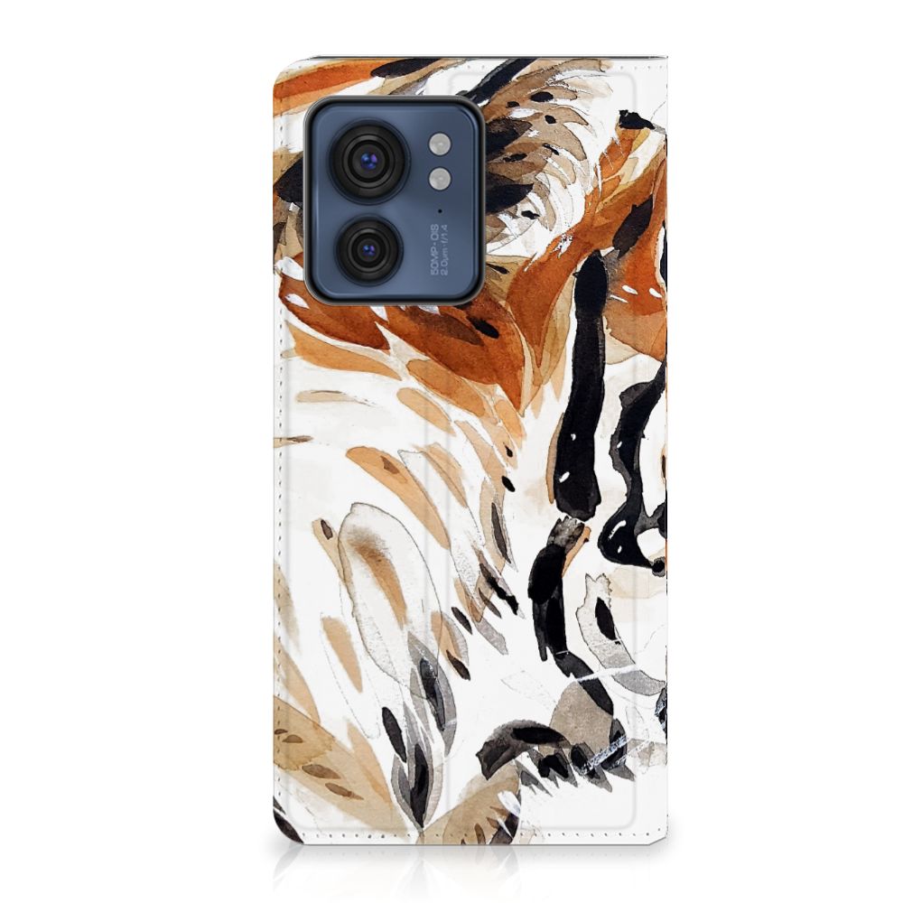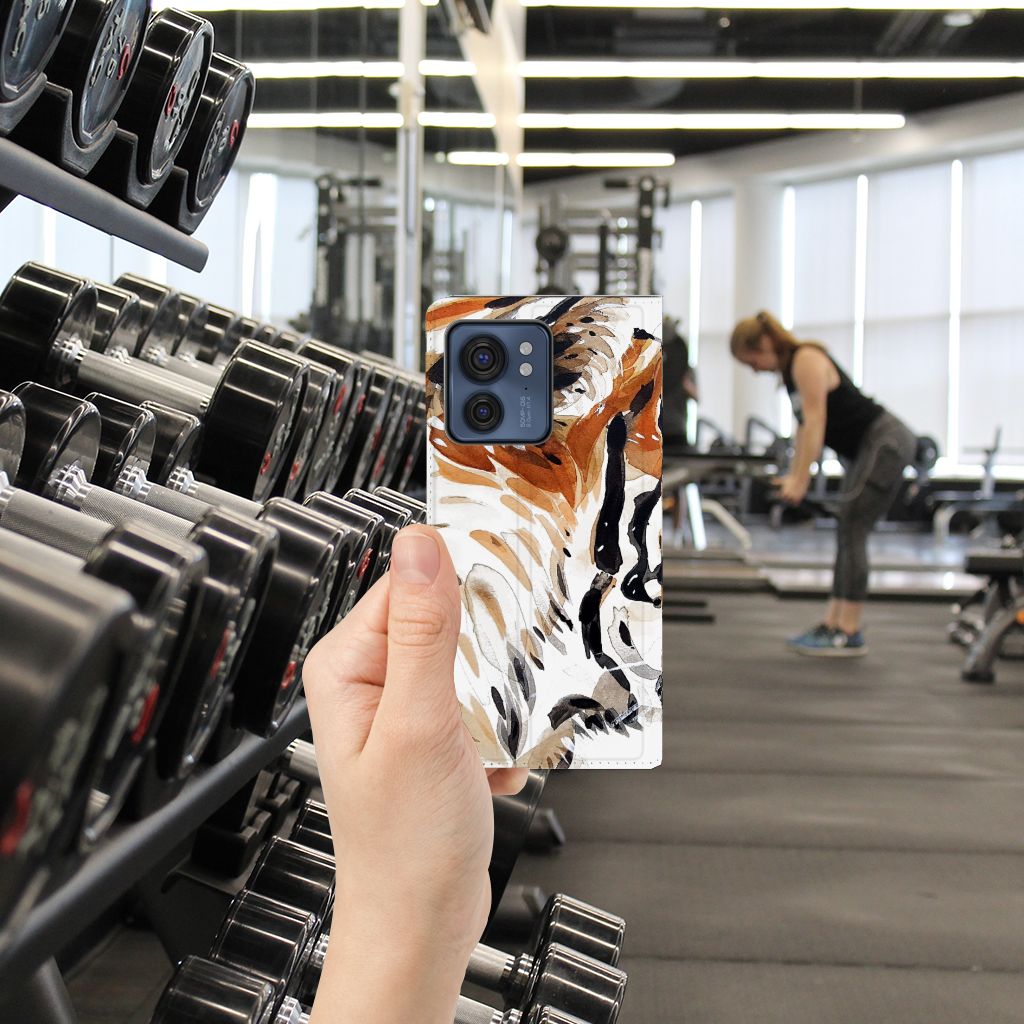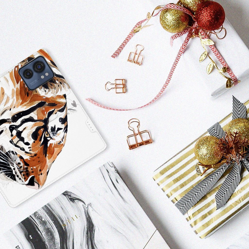 Omdat we tijgers zo bijzonder vinden, hebben we besloten deze voor zeer lage kosten voor jou op een Motorola Edge 40 Bookcase te zetten. Dit kunnen we goedkoop doen omdat we het drukwerk in eigen beheer doen. De tijger staat geschilderd op de stand case tegen een grijs met wit geblokte achtergrond. De Watercolor Tiger kunnen we bedrukken op verschillende soorten hoesjes, zoals deze stand cases. Het hoesje met geschilderde tijger tegen grijs met witte achtergrond is van PU-leer (buitenzijde) en TPU (binnenzijde) en beschikt een houder voor bijvoorbeeld je bankpas. Verder is de stand case met geschilderde tijger voorzien van een magnetische sluiting aan de binnenzijde. Jij zorgt voor de perfecte bescherming van je smartphone met dit stand hoesje met geschilderde tijger tegen een grijs met witte achtergrond.