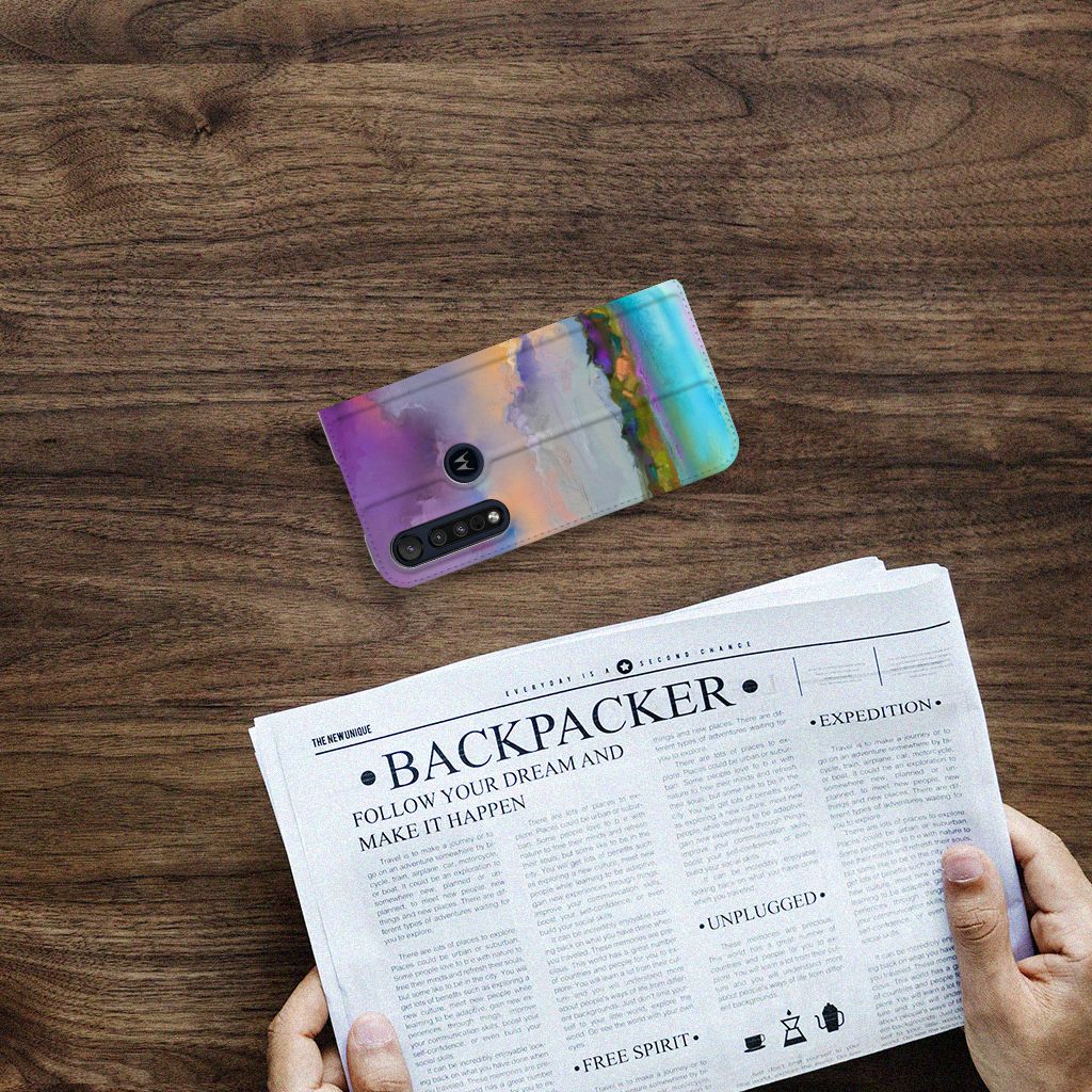 Het mooie ontwerp op dit hoesje zou je zo aan de muur willen hangen. Dit abstracte ‘schilderij’ van een bootje op een meer valt op vanwege de prachtige tinten blauw en paars. Een prachtig hoesje voor de liefhebber van kunst, boten en landschappen. Met een Bookcase is je Motorola G8 Plus goed beschermd. Dit populaire smartphonehoesje heeft één vakje voor een pasje of briefgeld en is aan alle zijden bedrukt. Met de standcase zet je je telefoon gemakkelijk neer, zodat je je handen vrij hebt als je bijvoorbeeld een video wilt kijken. De binnenkant van de standcase is van grijs PU-leer. Dat is fijn, omdat je daardoor niet snel vlekken ziet op je hoesje.