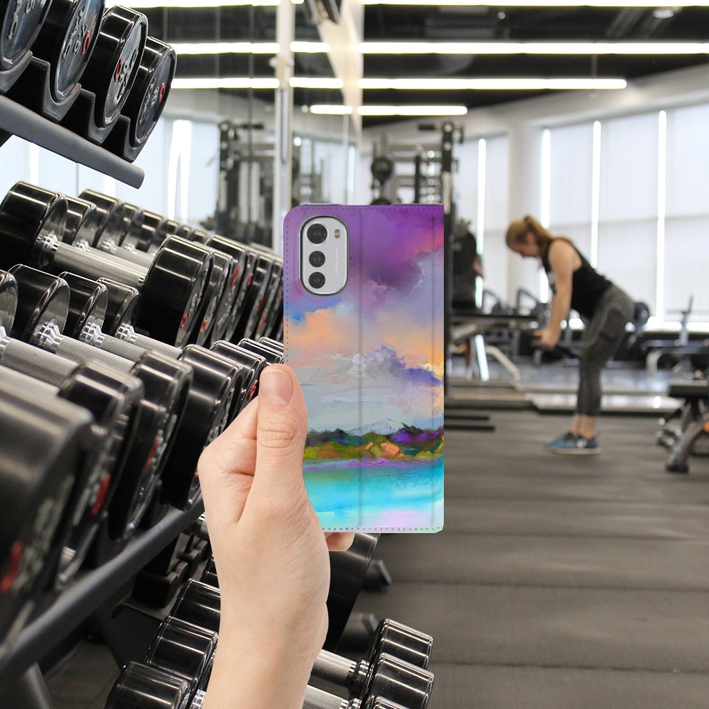 Het mooie ontwerp op dit hoesje zou je zo aan de muur willen hangen. Dit abstracte ‘schilderij’ van een bootje op een meer valt op vanwege de prachtige tinten blauw en paars. Een prachtig hoesje voor de liefhebber van kunst, boten en landschappen. Met een Bookcase is je Motorola Moto E32 | Moto E32s goed beschermd. Dit populaire smartphonehoesje heeft één vakje voor een pasje of briefgeld en is aan alle zijden bedrukt. Met de standcase zet je je telefoon gemakkelijk neer, zodat je je handen vrij hebt als je bijvoorbeeld een video wilt kijken. De binnenkant van de standcase is van grijs PU-leer. Dat is fijn, omdat je daardoor niet snel vlekken ziet op je hoesje.