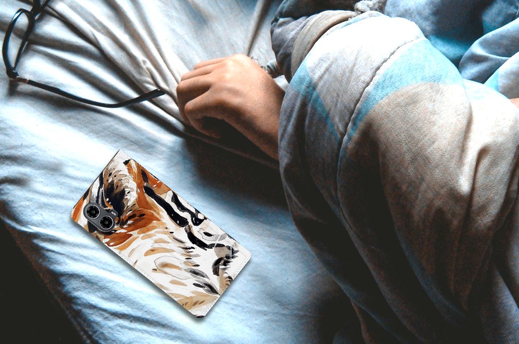 Omdat we tijgers zo bijzonder vinden, hebben we besloten deze voor zeer lage kosten voor jou op een Motorola Moto G34 Bookcase te zetten. Dit kunnen we goedkoop doen omdat we het drukwerk in eigen beheer doen. De tijger staat geschilderd op de stand case tegen een grijs met wit geblokte achtergrond. De Watercolor Tiger kunnen we bedrukken op verschillende soorten hoesjes, zoals deze stand cases. Het hoesje met geschilderde tijger tegen grijs met witte achtergrond is van PU-leer (buitenzijde) en TPU (binnenzijde) en beschikt een houder voor bijvoorbeeld je bankpas. Verder is de stand case met geschilderde tijger voorzien van een magnetische sluiting aan de binnenzijde. Jij zorgt voor de perfecte bescherming van je smartphone met dit stand hoesje met geschilderde tijger tegen een grijs met witte achtergrond.