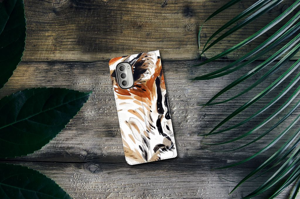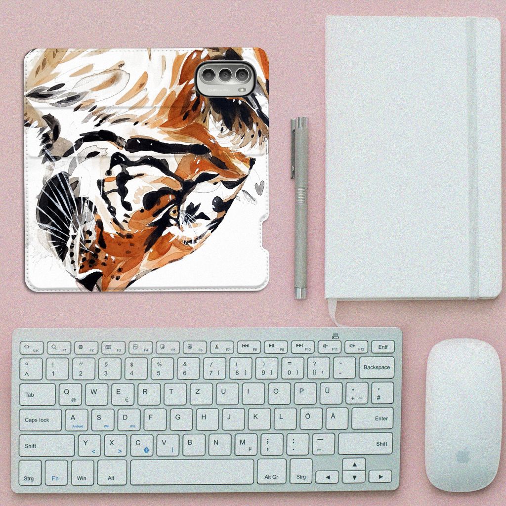 Omdat we tijgers zo bijzonder vinden, hebben we besloten deze voor zeer lage kosten voor jou op een Motorola Moto G51 5G Bookcase te zetten. Dit kunnen we goedkoop doen omdat we het drukwerk in eigen beheer doen. De tijger staat geschilderd op de stand case tegen een grijs met wit geblokte achtergrond. De Watercolor Tiger kunnen we bedrukken op verschillende soorten hoesjes, zoals deze stand cases. Het hoesje met geschilderde tijger tegen grijs met witte achtergrond is van PU-leer (buitenzijde) en TPU (binnenzijde) en beschikt een houder voor bijvoorbeeld je bankpas. Verder is de stand case met geschilderde tijger voorzien van een magnetische sluiting aan de binnenzijde. Jij zorgt voor de perfecte bescherming van je smartphone met dit stand hoesje met geschilderde tijger tegen een grijs met witte achtergrond.
