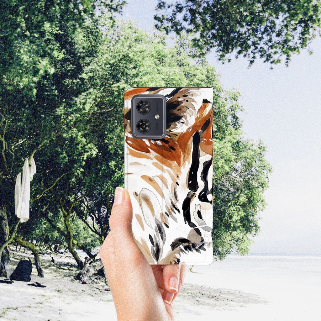 Omdat we tijgers zo bijzonder vinden, hebben we besloten deze voor zeer lage kosten voor jou op een Motorola Moto G54 Bookcase te zetten. Dit kunnen we goedkoop doen omdat we het drukwerk in eigen beheer doen. De tijger staat geschilderd op de stand case tegen een grijs met wit geblokte achtergrond. De Watercolor Tiger kunnen we bedrukken op verschillende soorten hoesjes, zoals deze stand cases. Het hoesje met geschilderde tijger tegen grijs met witte achtergrond is van PU-leer (buitenzijde) en TPU (binnenzijde) en beschikt een houder voor bijvoorbeeld je bankpas. Verder is de stand case met geschilderde tijger voorzien van een magnetische sluiting aan de binnenzijde. Jij zorgt voor de perfecte bescherming van je smartphone met dit stand hoesje met geschilderde tijger tegen een grijs met witte achtergrond.