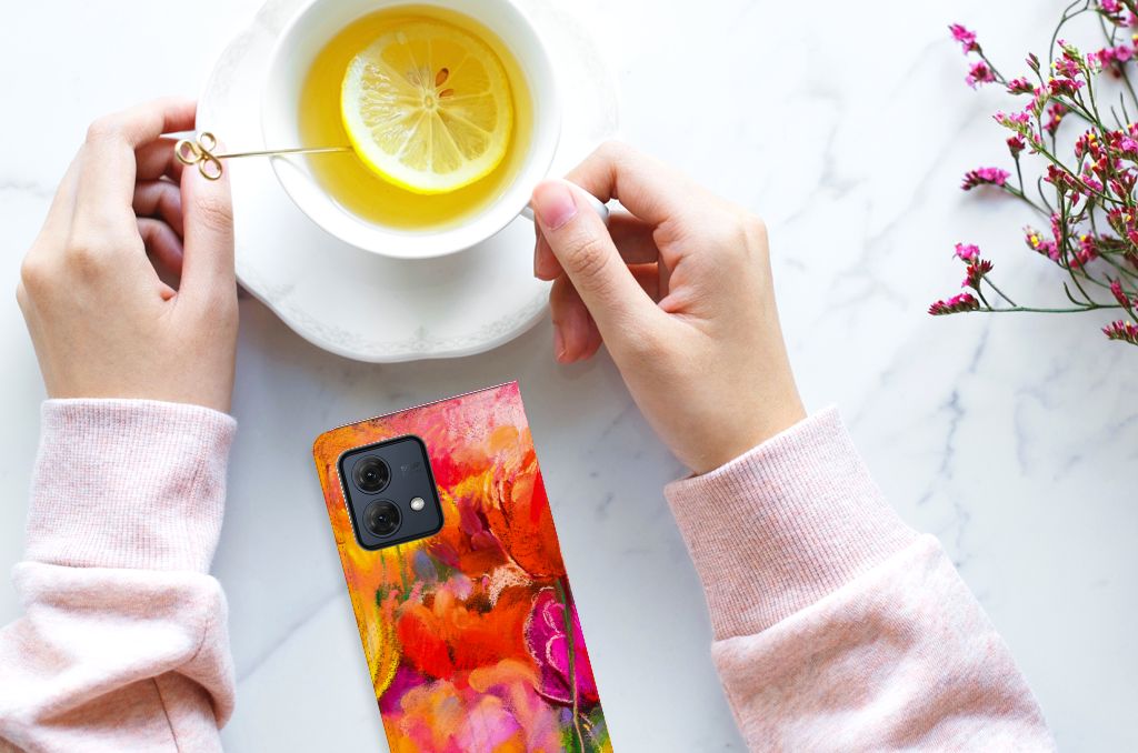 Ben je op zoek naar een uniek telefoonhoesje voor je Motorola Moto G84? Dan ben je bij B2C Telecom aan het juiste adres! Speciaal voor jou hebben we dit prachtige Tulips design in onze collectie hoesjes opgenomen. Het design wordt bedrukt op een Bookcase en heeft een vakje aan de binnenkant voor een pasje. Het fijne aan dit hoesje is dat je het als standaard neer kunt zetten. Hierdoor geniet je nog meer als je een filmpje aan het kijken bent op je telefoon. Het hoesje wordt afgesloten door magneten aan de binnenkant. Wil je dit design hoesje nog iets extra's geven? Voeg dan gratis je naam of een quote toe! Is dit design hoesje toch niet helemaal wat je zocht? Ontwerp dan zelf een hoesje in ons ontwerpprogramma.