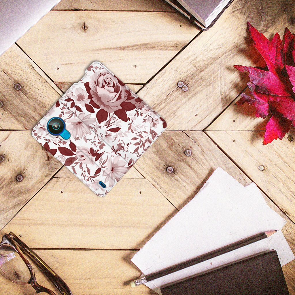 Nokia 1.4 Portemonnee Hoesje Flowers Pink DTMP
