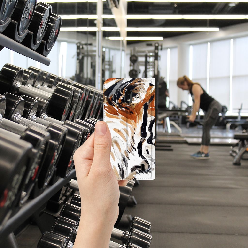 Omdat we tijgers zo bijzonder vinden, hebben we besloten deze voor zeer lage kosten voor jou op een Nokia 2.2 Bookcase te zetten. Dit kunnen we goedkoop doen omdat we het drukwerk in eigen beheer doen. De tijger staat geschilderd op de stand case tegen een grijs met wit geblokte achtergrond. De Watercolor Tiger kunnen we bedrukken op verschillende soorten hoesjes, zoals deze stand cases. Het hoesje met geschilderde tijger tegen grijs met witte achtergrond is van PU-leer (buitenzijde) en TPU (binnenzijde) en beschikt een houder voor bijvoorbeeld je bankpas. Verder is de stand case met geschilderde tijger voorzien van een magnetische sluiting aan de binnenzijde. Jij zorgt voor de perfecte bescherming van je smartphone met dit stand hoesje met geschilderde tijger tegen een grijs met witte achtergrond.