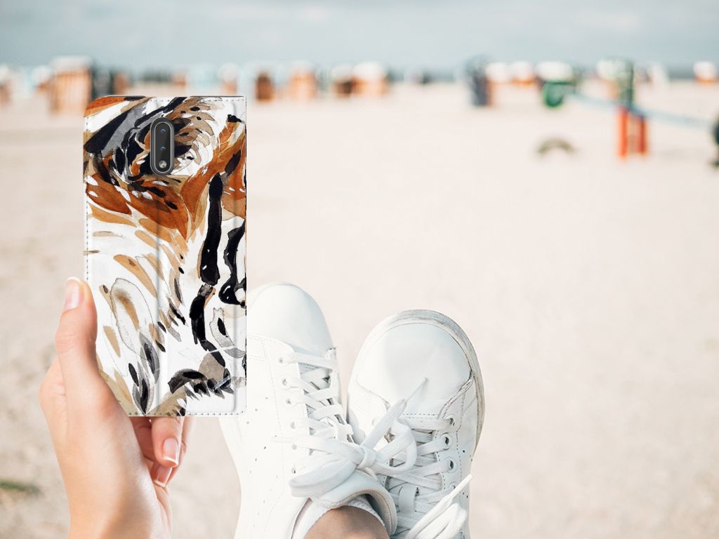 Omdat we tijgers zo bijzonder vinden, hebben we besloten deze voor zeer lage kosten voor jou op een Nokia 2.3 Bookcase te zetten. Dit kunnen we goedkoop doen omdat we het drukwerk in eigen beheer doen. De tijger staat geschilderd op de stand case tegen een grijs met wit geblokte achtergrond. De Watercolor Tiger kunnen we bedrukken op verschillende soorten hoesjes, zoals deze stand cases. Het hoesje met geschilderde tijger tegen grijs met witte achtergrond is van PU-leer (buitenzijde) en TPU (binnenzijde) en beschikt een houder voor bijvoorbeeld je bankpas. Verder is de stand case met geschilderde tijger voorzien van een magnetische sluiting aan de binnenzijde. Jij zorgt voor de perfecte bescherming van je smartphone met dit stand hoesje met geschilderde tijger tegen een grijs met witte achtergrond.